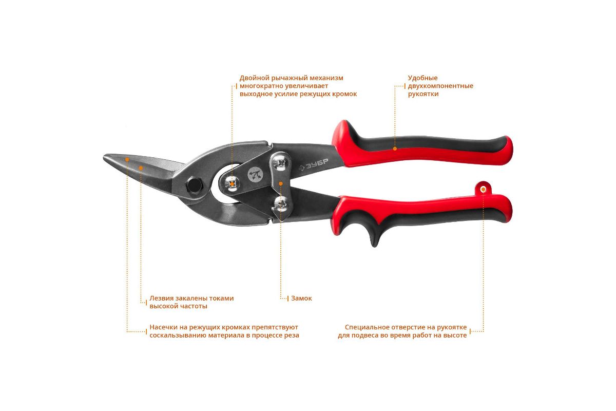 Ножницы по металлу ЗУБР 23140-S двухрычажные, прямые, У8А, 250 мм