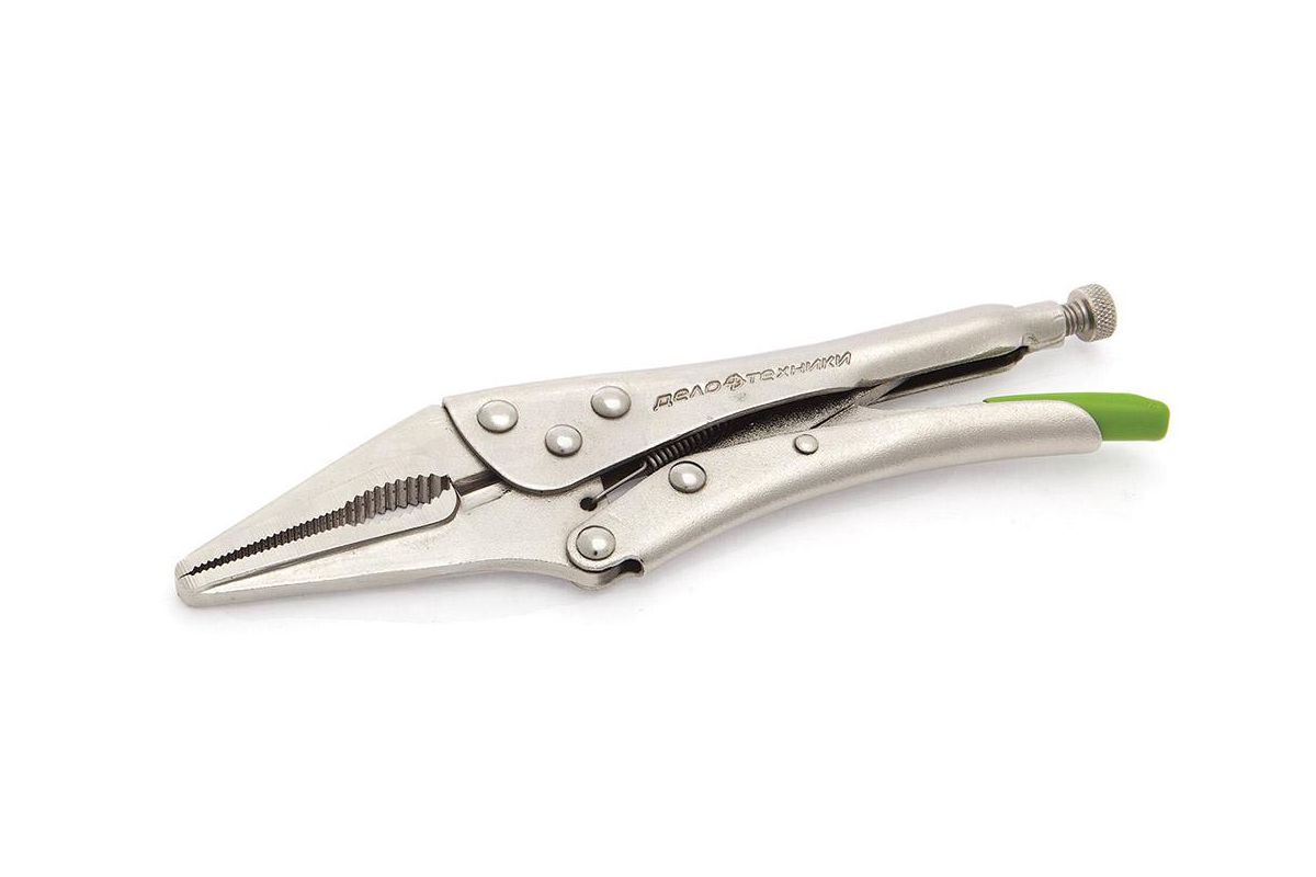 Отличается возможностью быстро настроить расстояние между губками под размер зажимаемой детали (при помощи винта на рукоятке), а также наличием фиксатора.