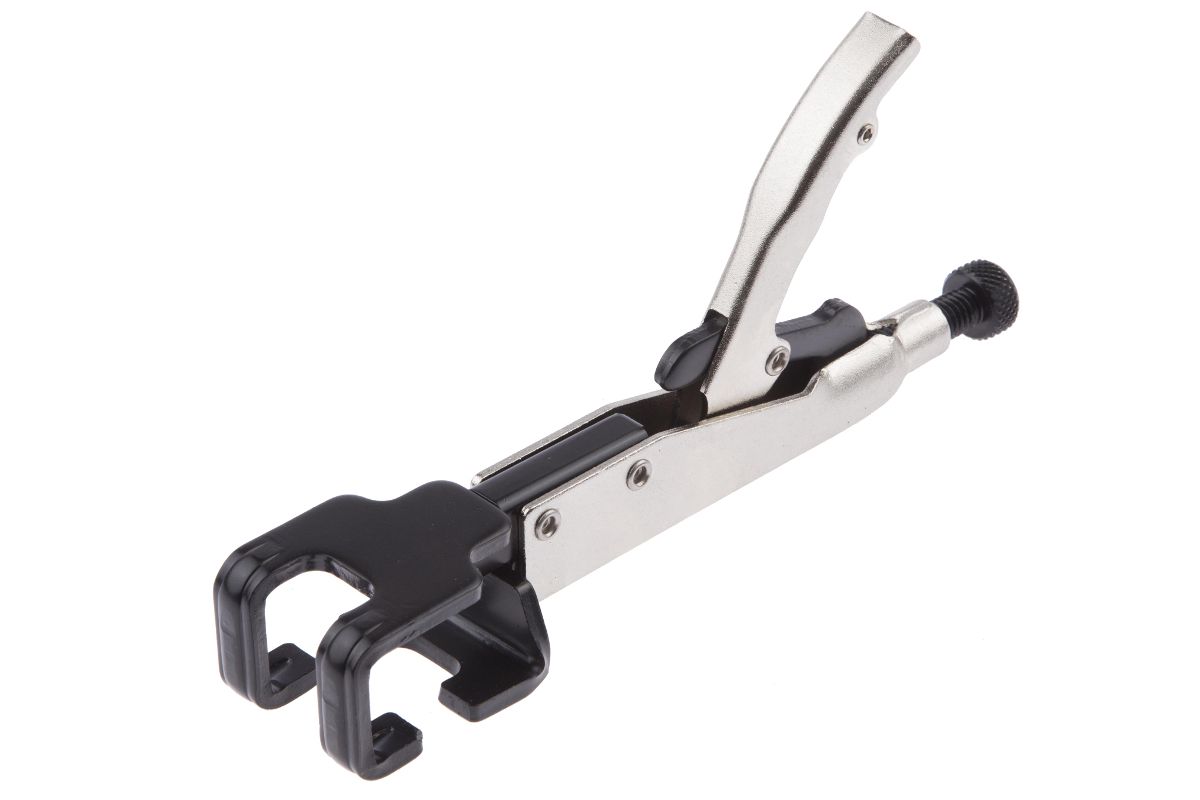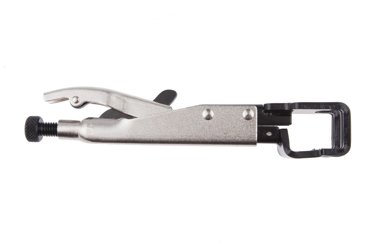 Сварочный зажим является прочным ручным инструментом из стали и служит для зажима деталей перед сваркой. Зажим оснащен фиксатором, который позволяет освободить руки во время работы.