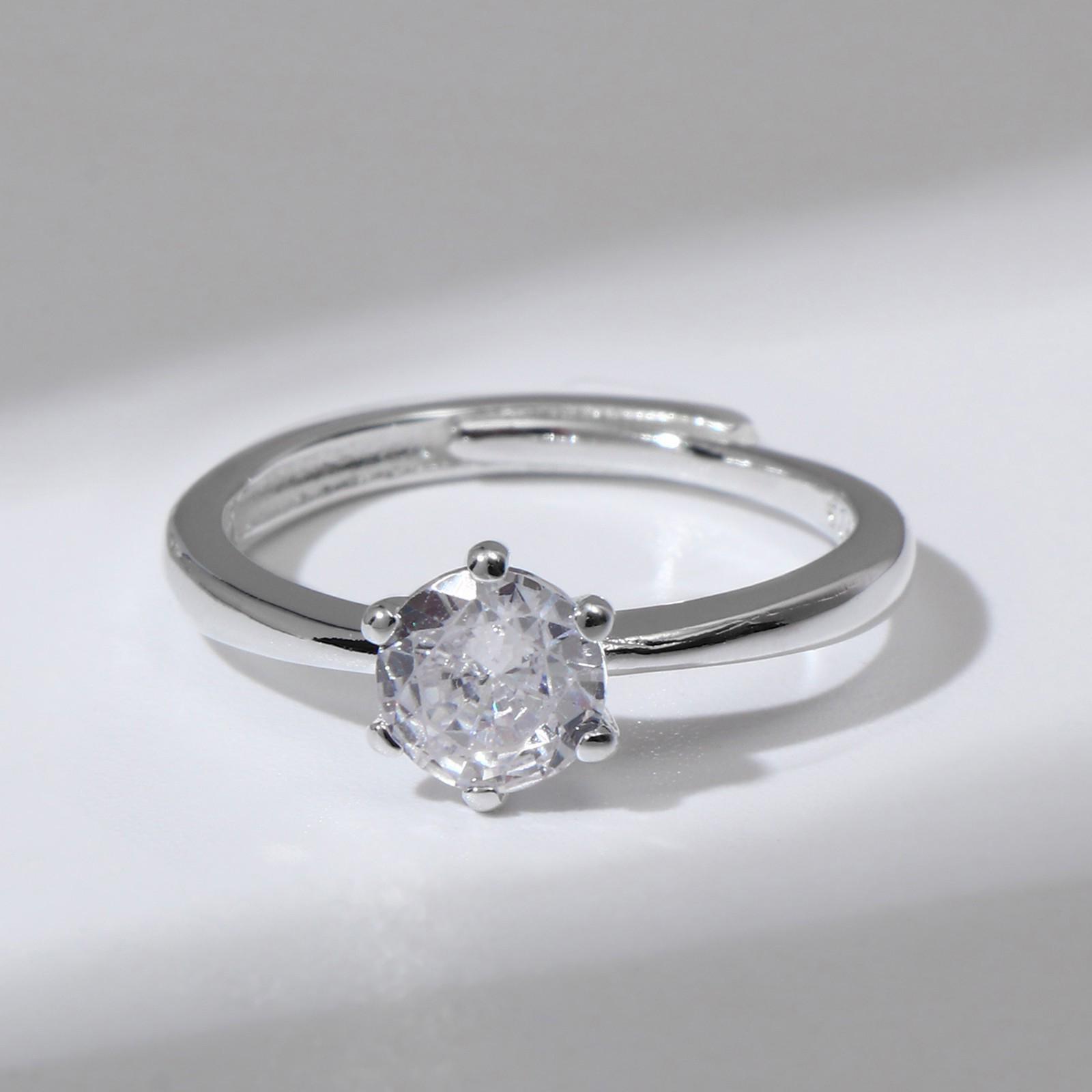 Кольцо "Классика" кристалл, цвет белый в серебре, безразмерное