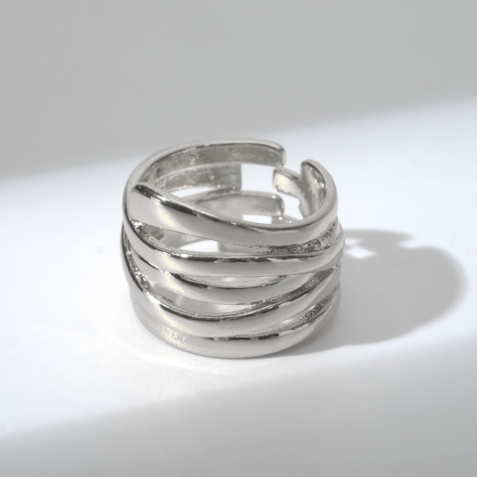 Кольцо "Звенья" широкое, цвет серебро, безразмерное
