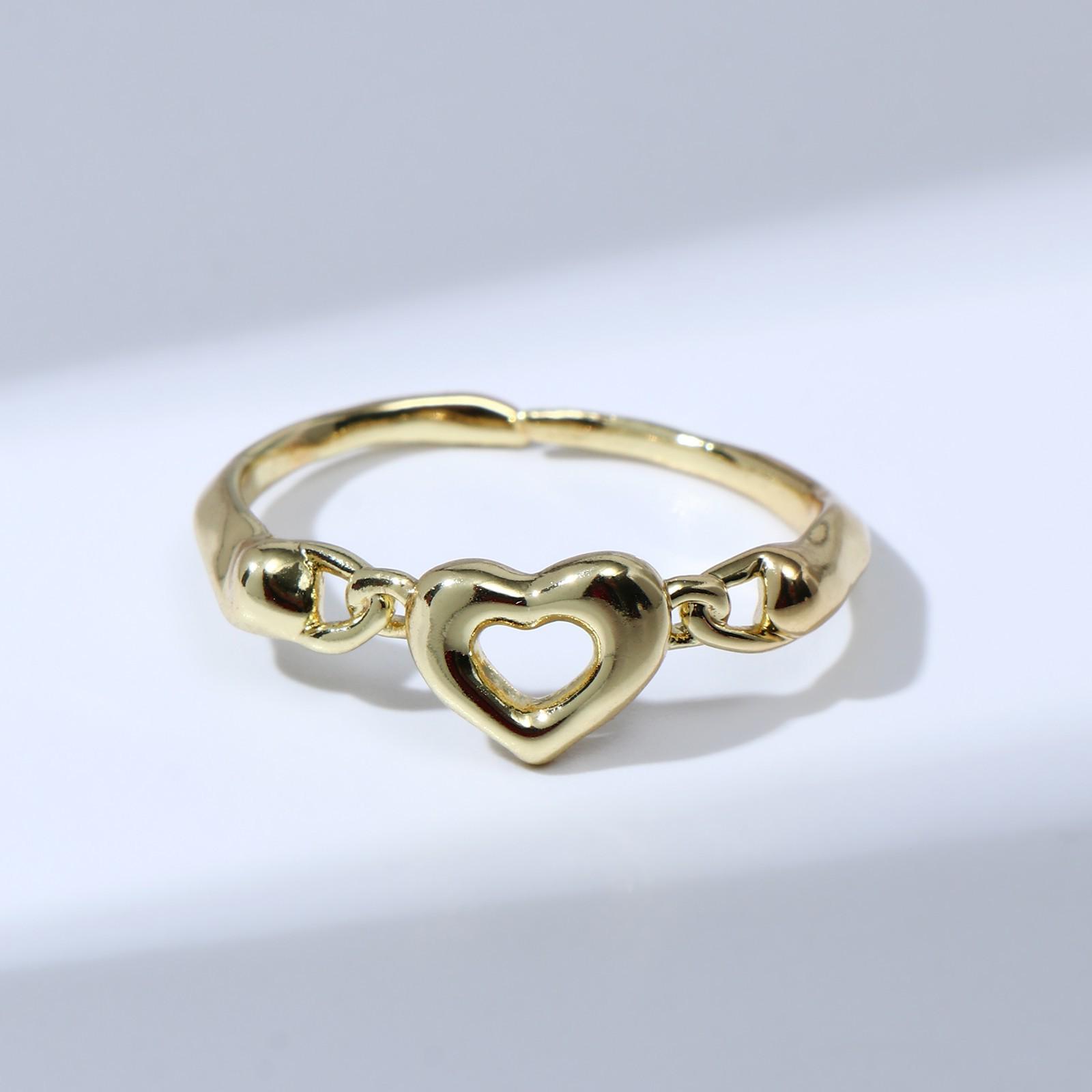 Кольцо "Медь" сердце, цвет золото, безразмерное
