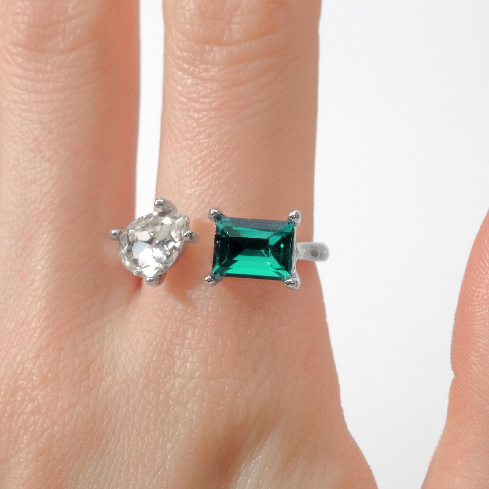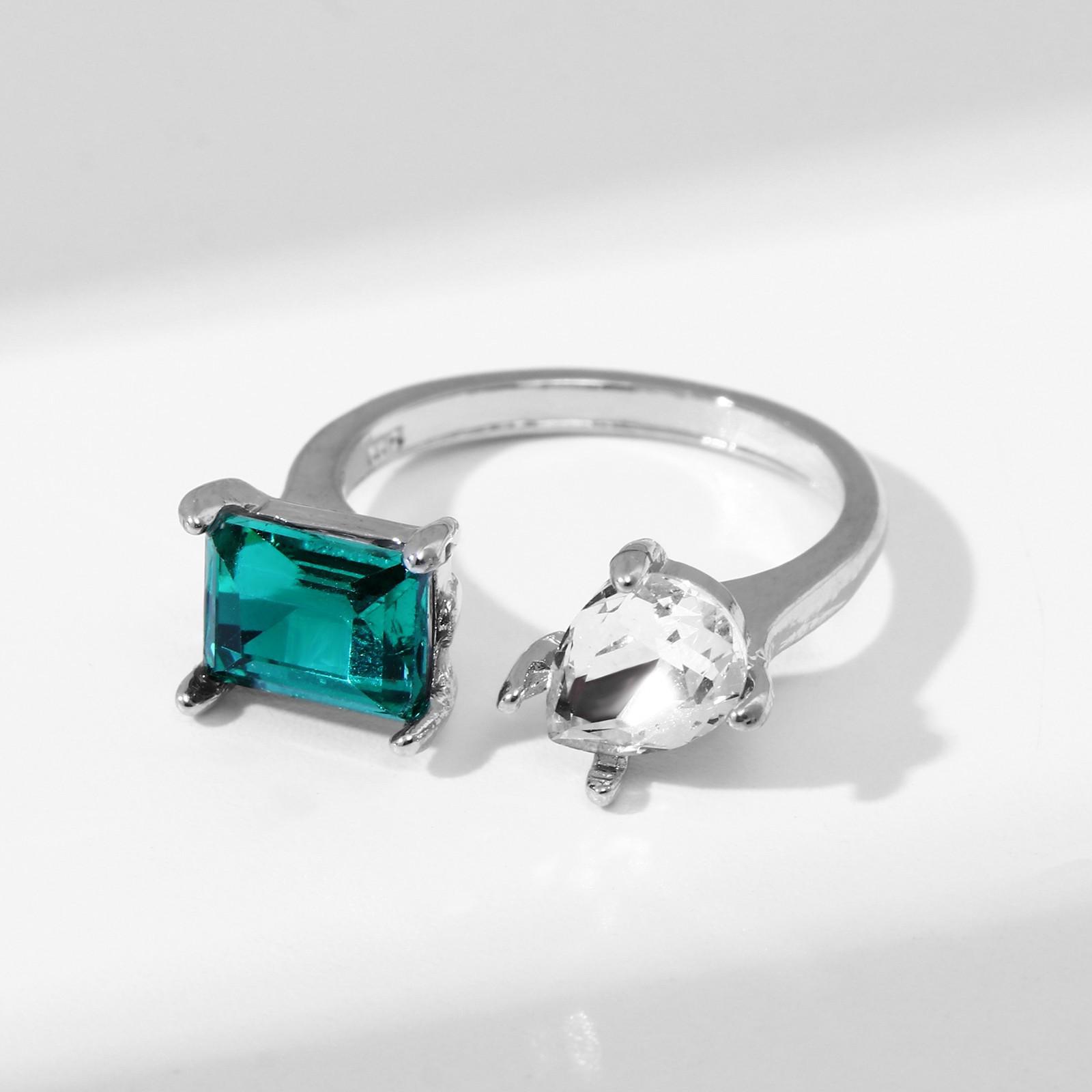 Кольцо "Драгоценность" фигуры, цвет бело-изумрудный в серебре, безразмерное