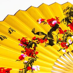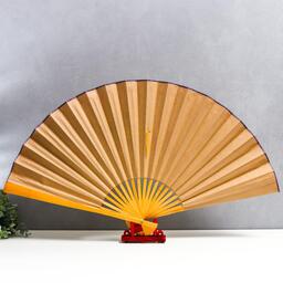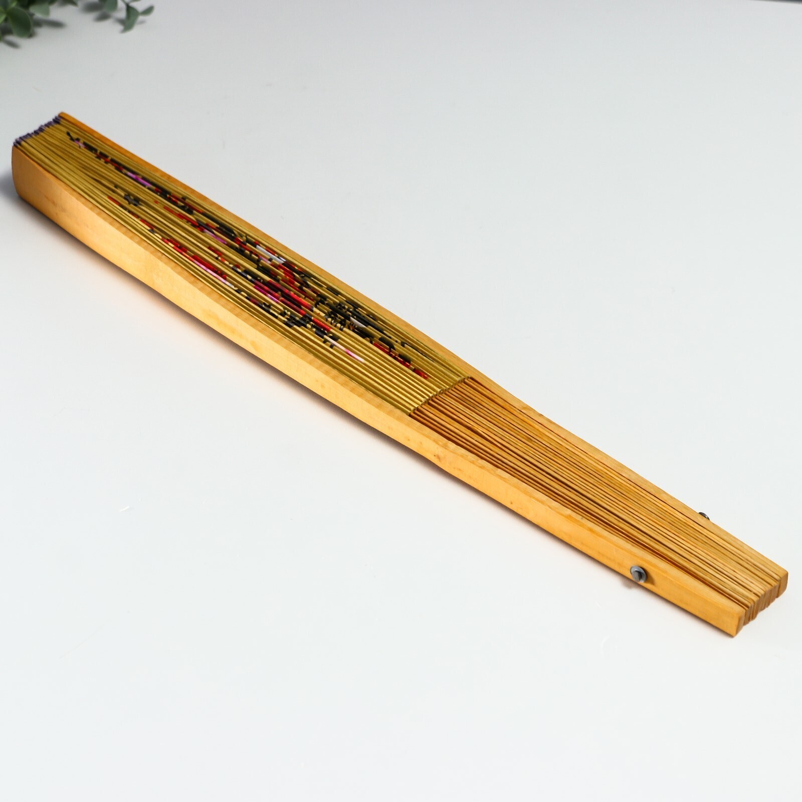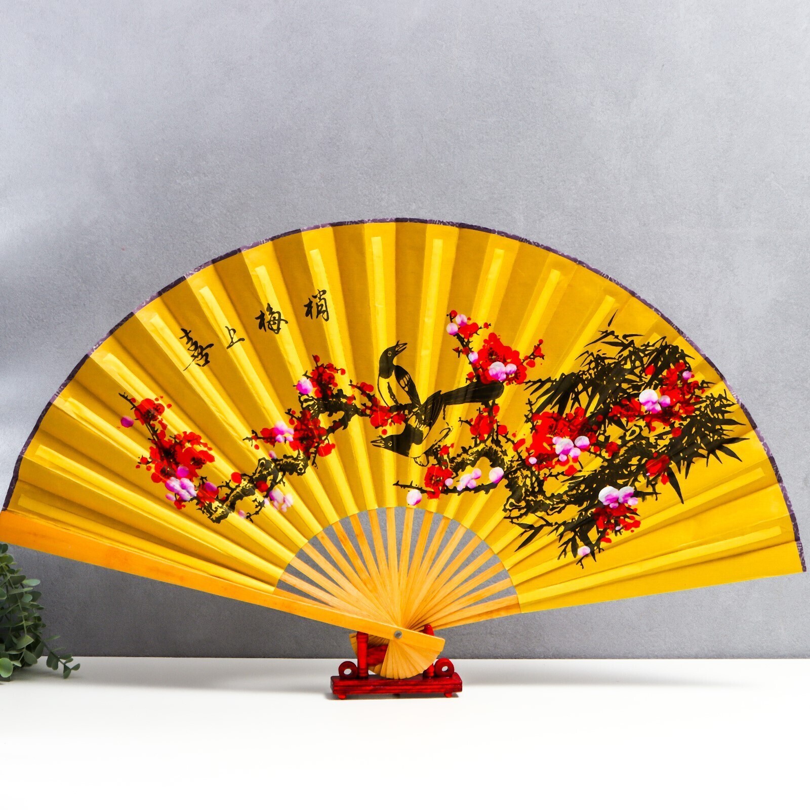 Веер бамбук, текстиль h=50 см "Сакура с птицами" оранжевый