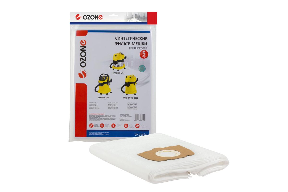 Фильтр-мешки для пылесоса KARCHER MV 4, MV 5, MV 6, WD 4, WD 5, WD 6, 5 шт., синтетика, не боятся мокрой пыли, бренд: OZONE, арт. CP-219/5
