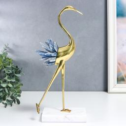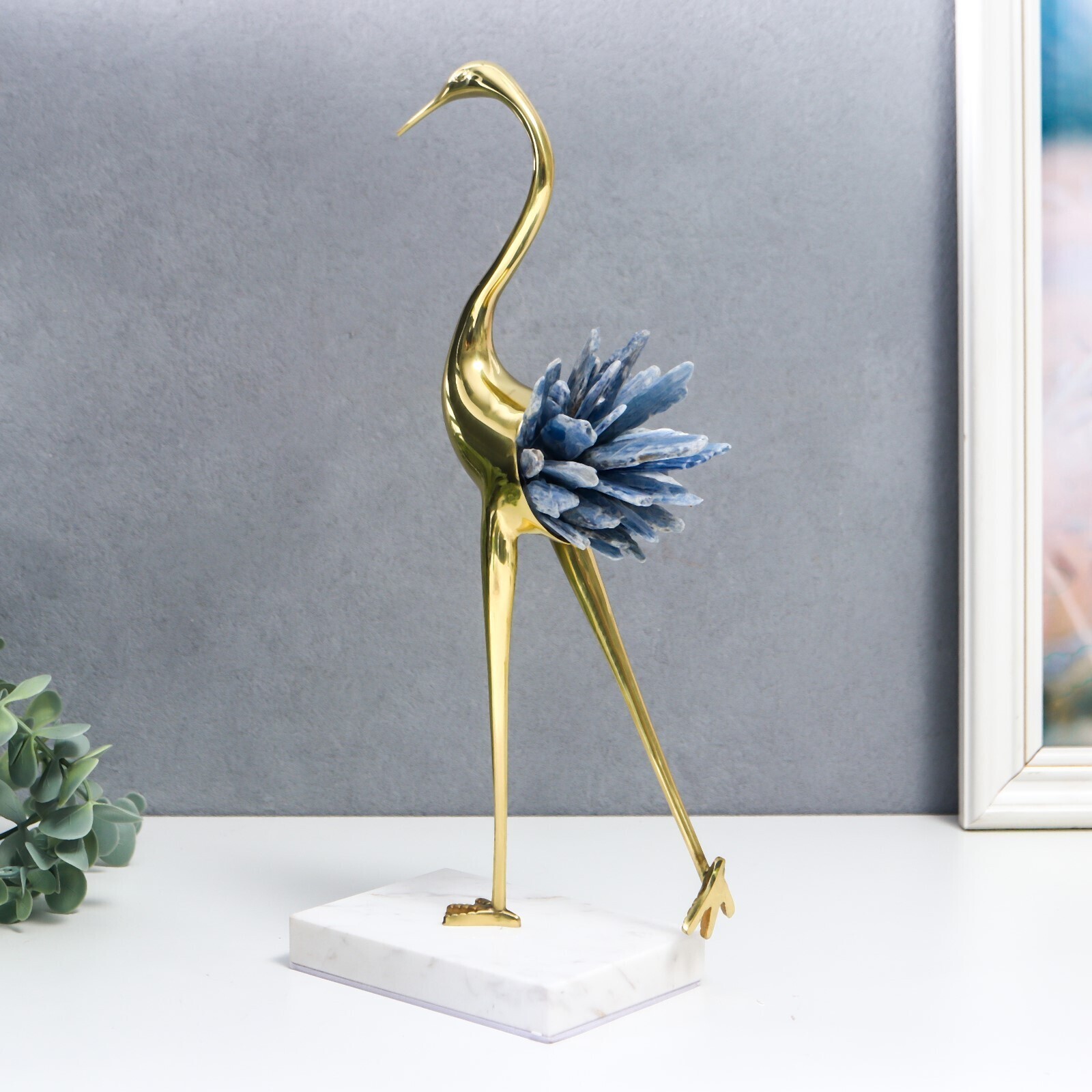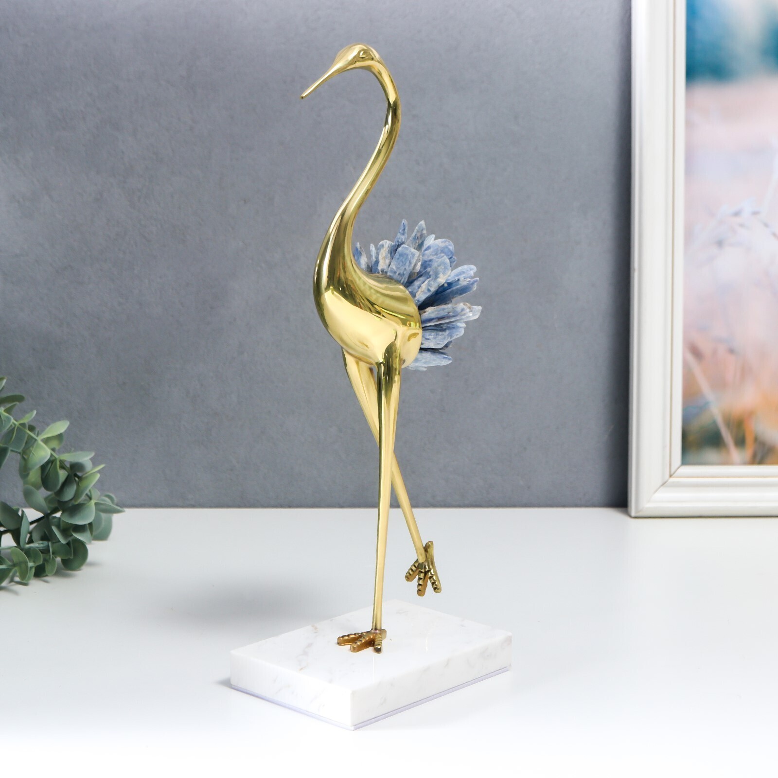 Сувенир интерьерный латунь, кварц "Журавль, хвост из серого агата" 24х9х18 см