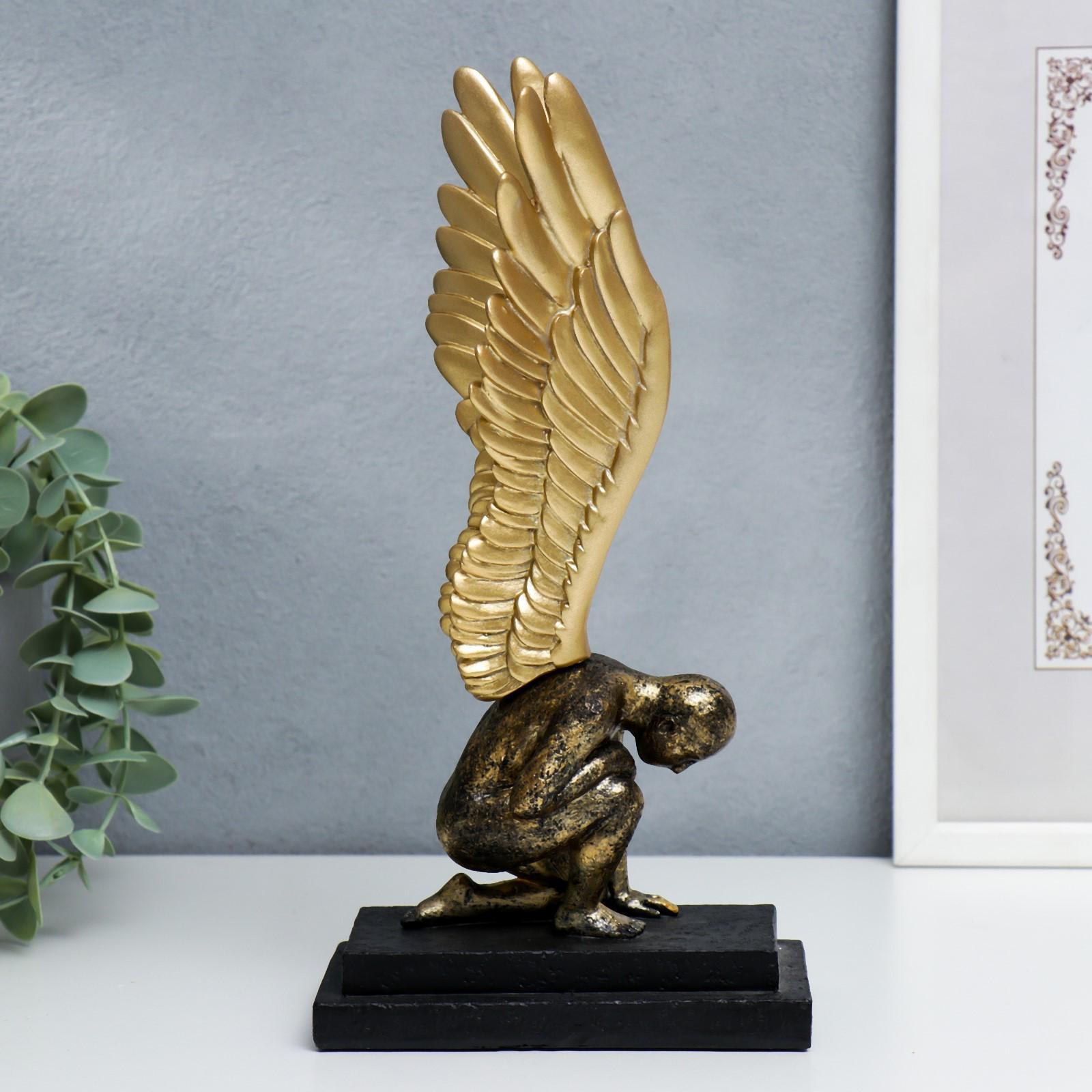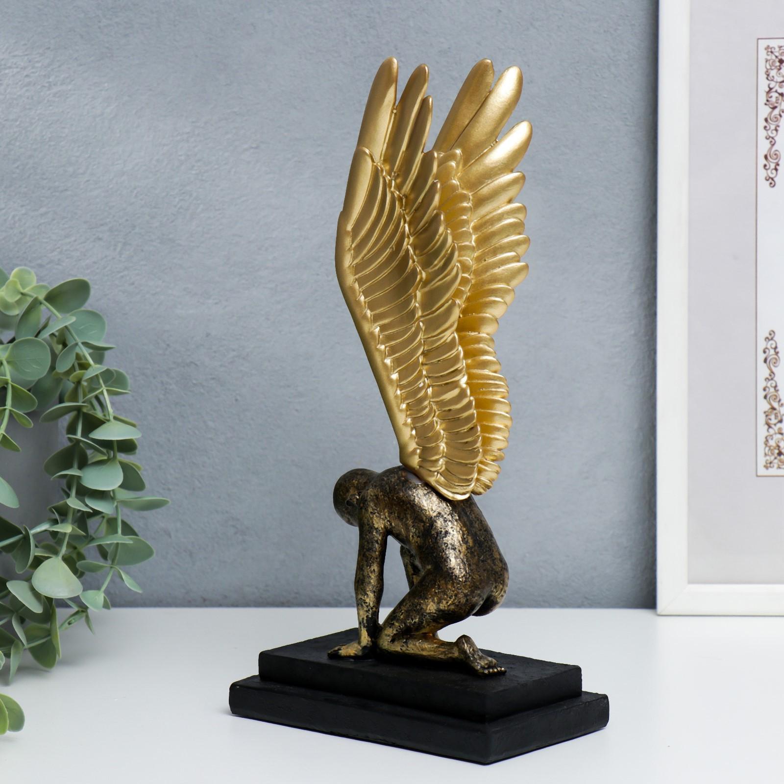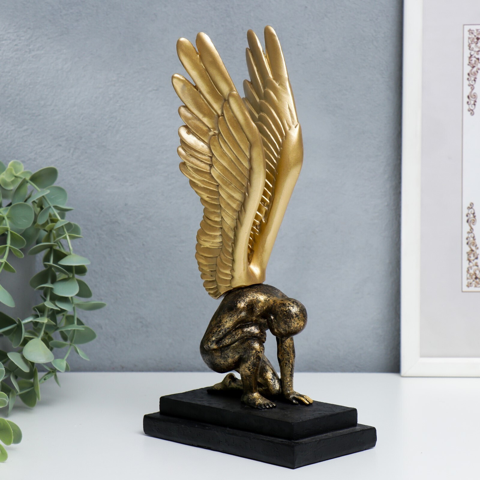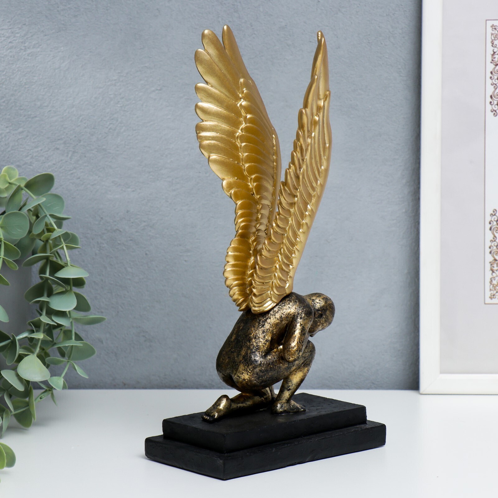 Сувенир полистоун "Ангел с золотыми крыльями - преклонение" 25,5х11х13 см