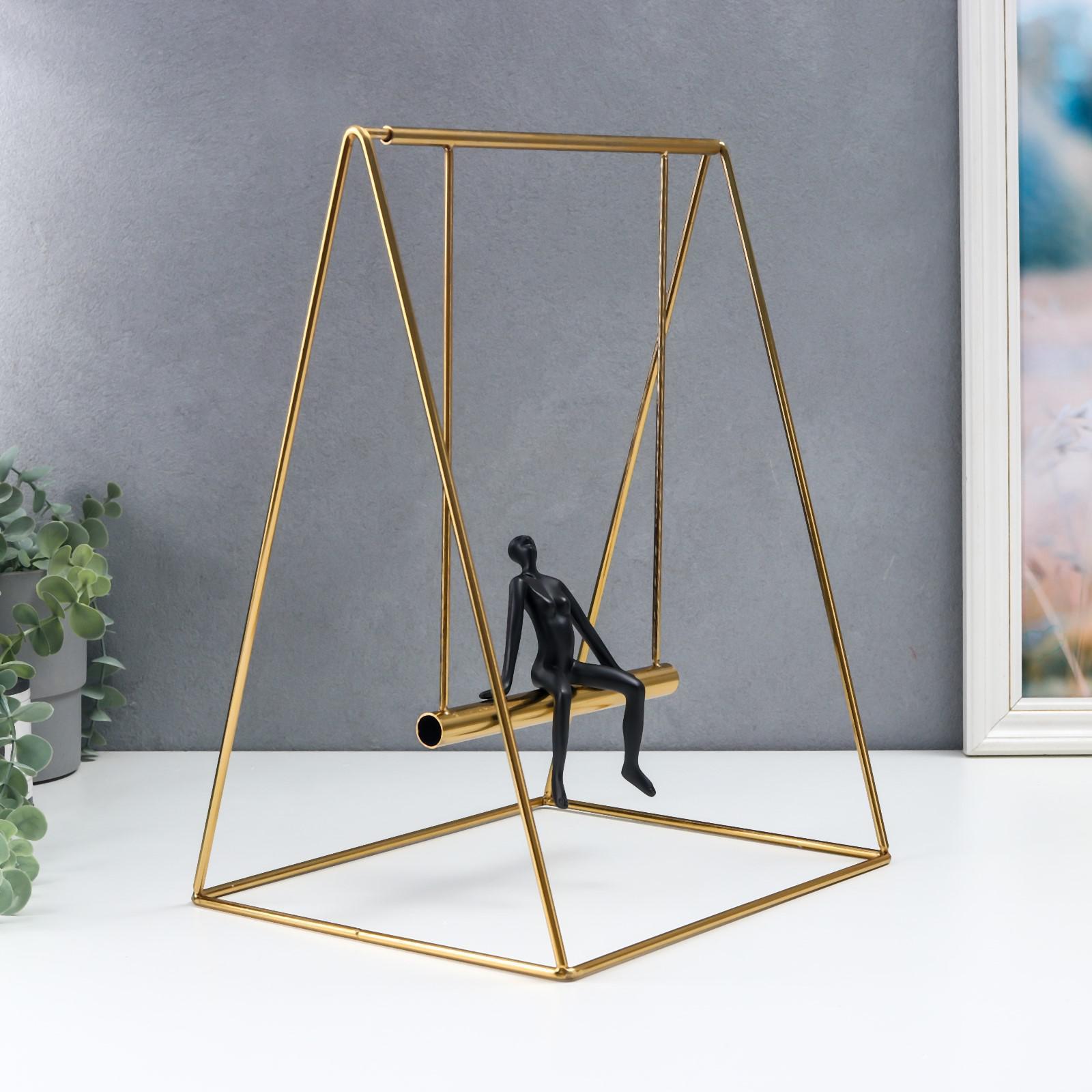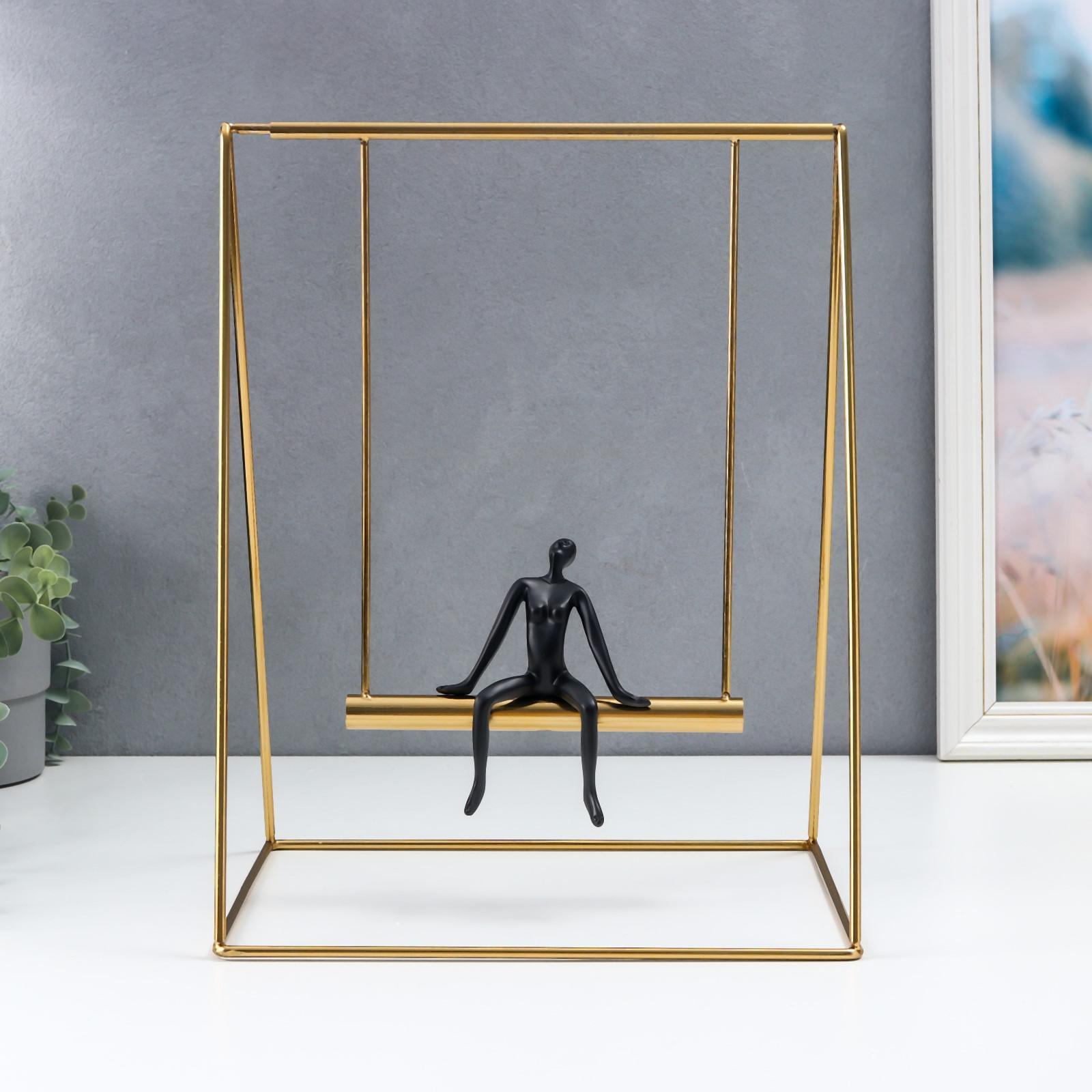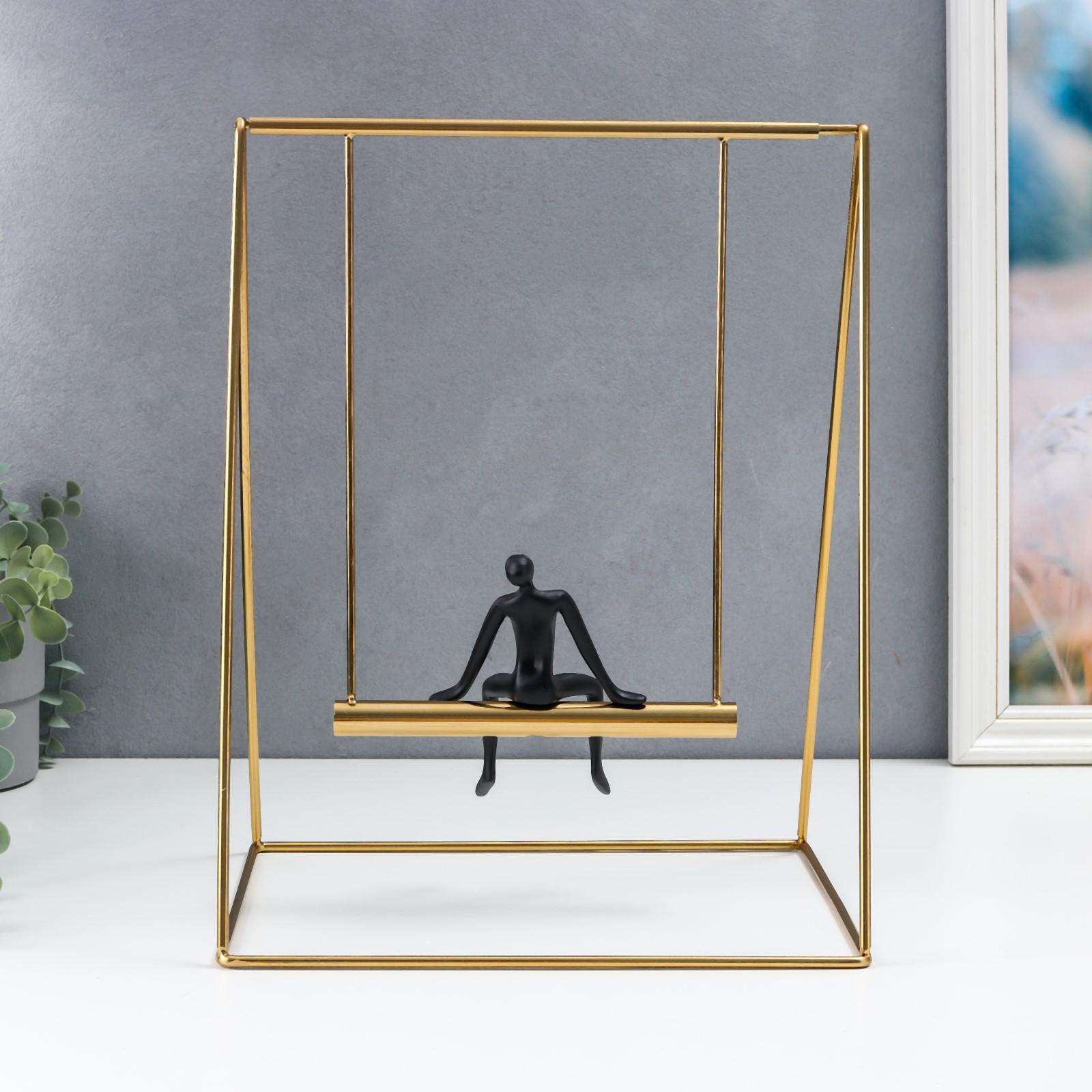 Сувенир полистоун, металл "Человек и качели" чёрный с золотом 36х22х27 см