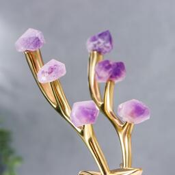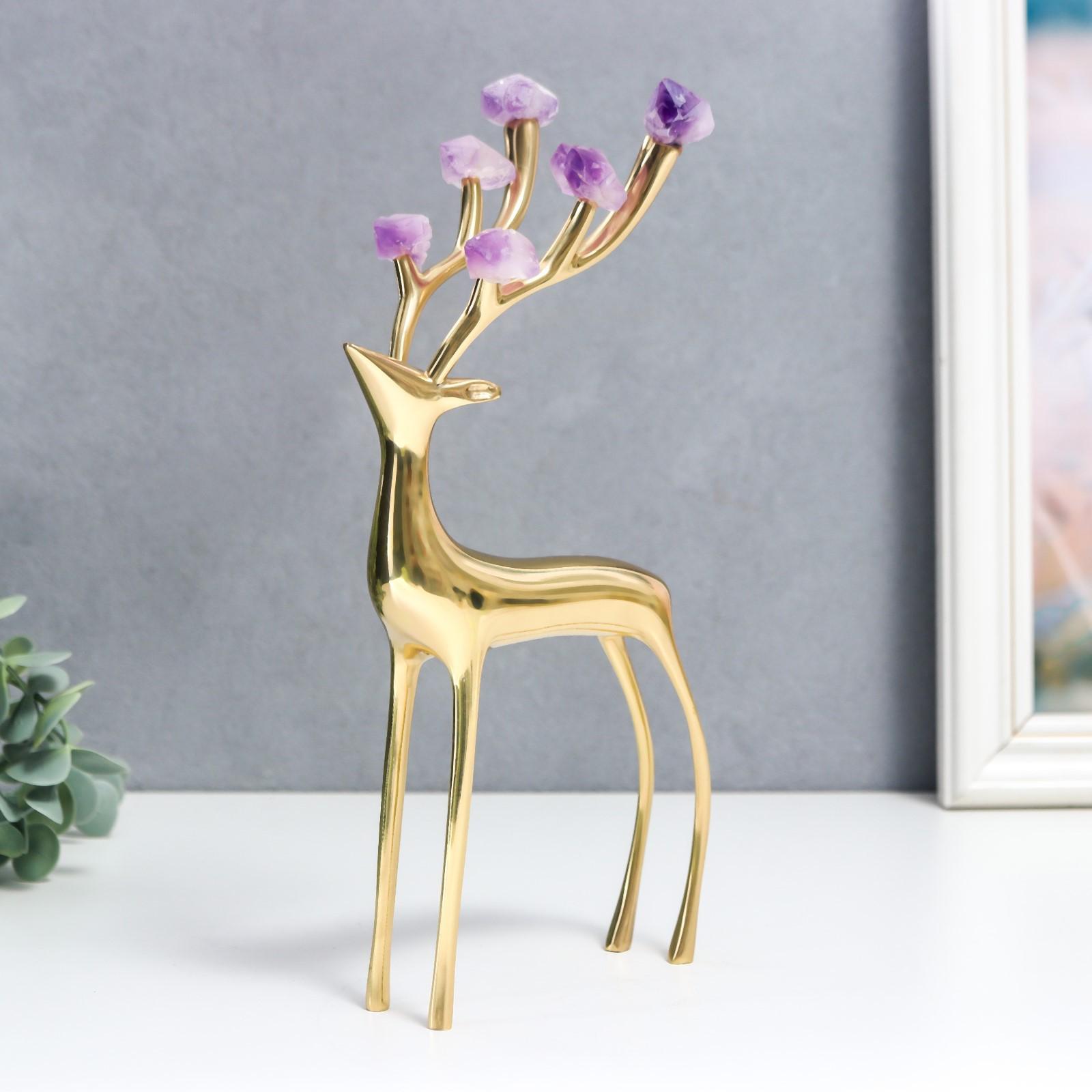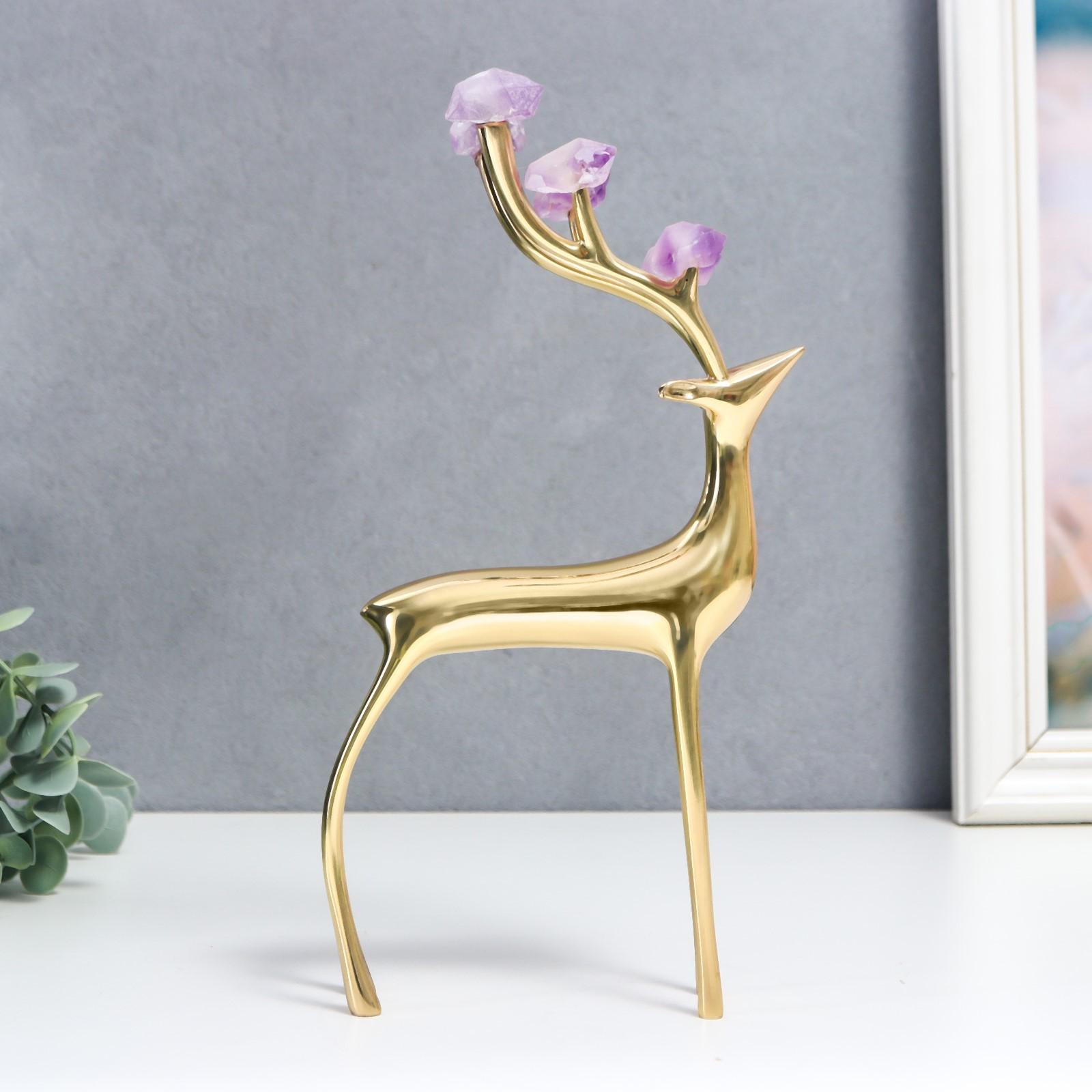 Сувенир интерьерный латунь, кварц "Золотой олень с кристаллами аметиста" 25х5х14 см