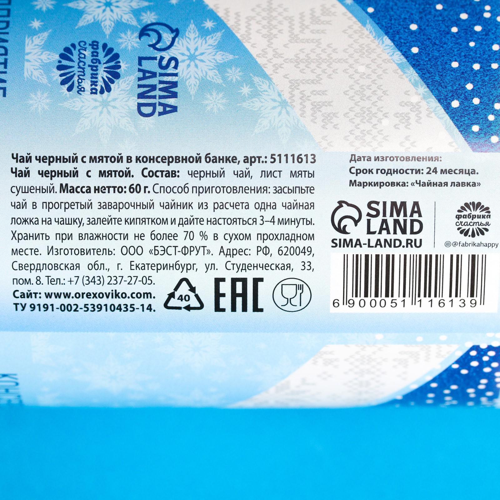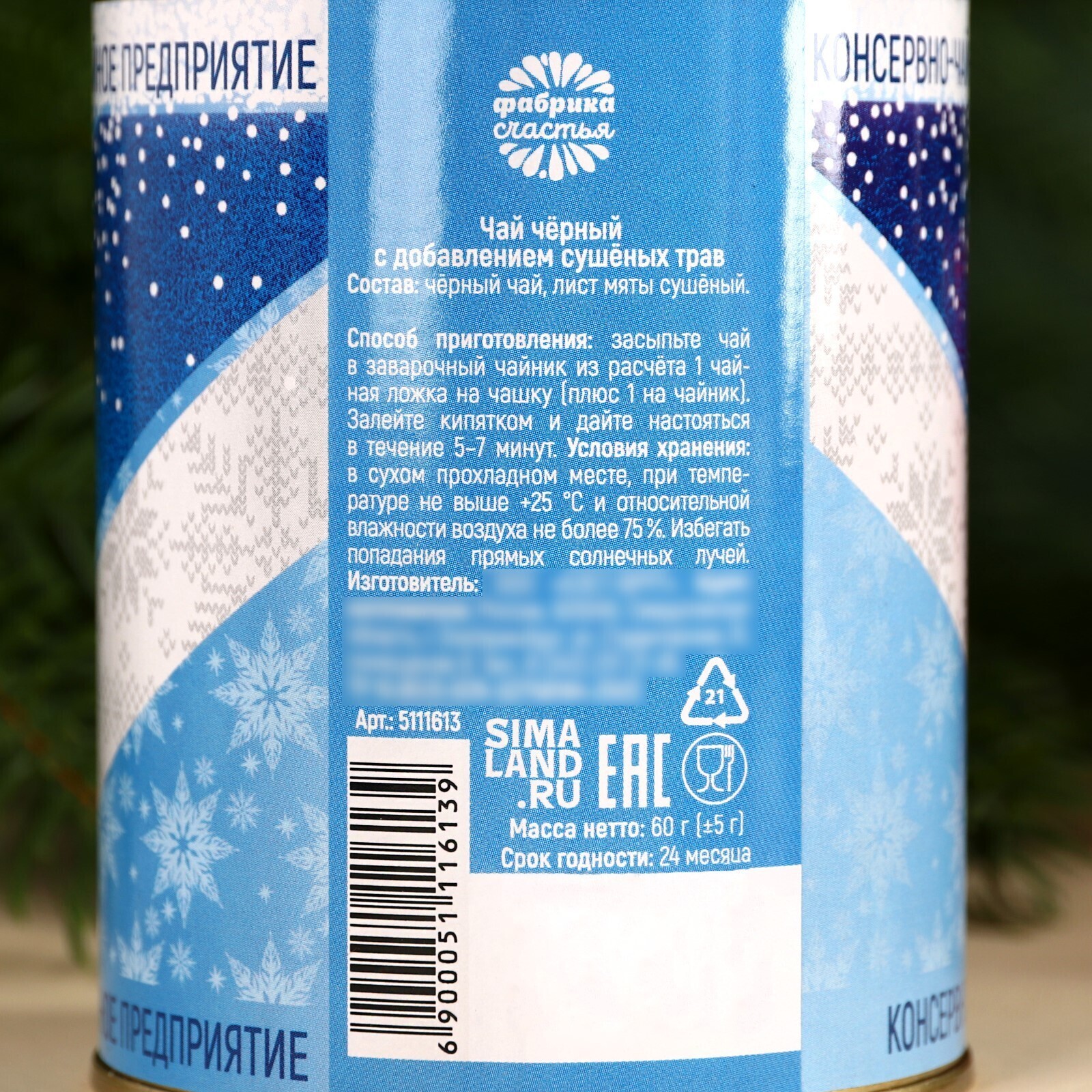 Состав: черный чай, лист мяты сушеный. Масса нетто: 60 г. Срок годности: 24 мес.