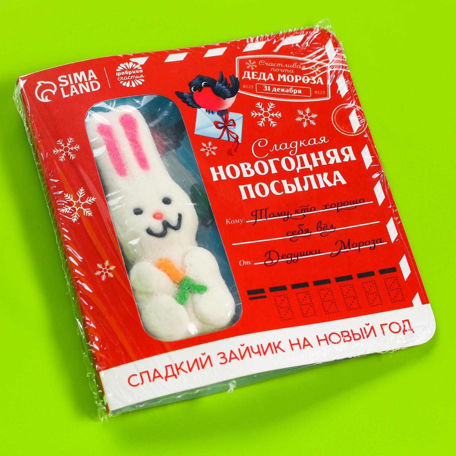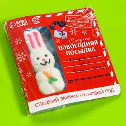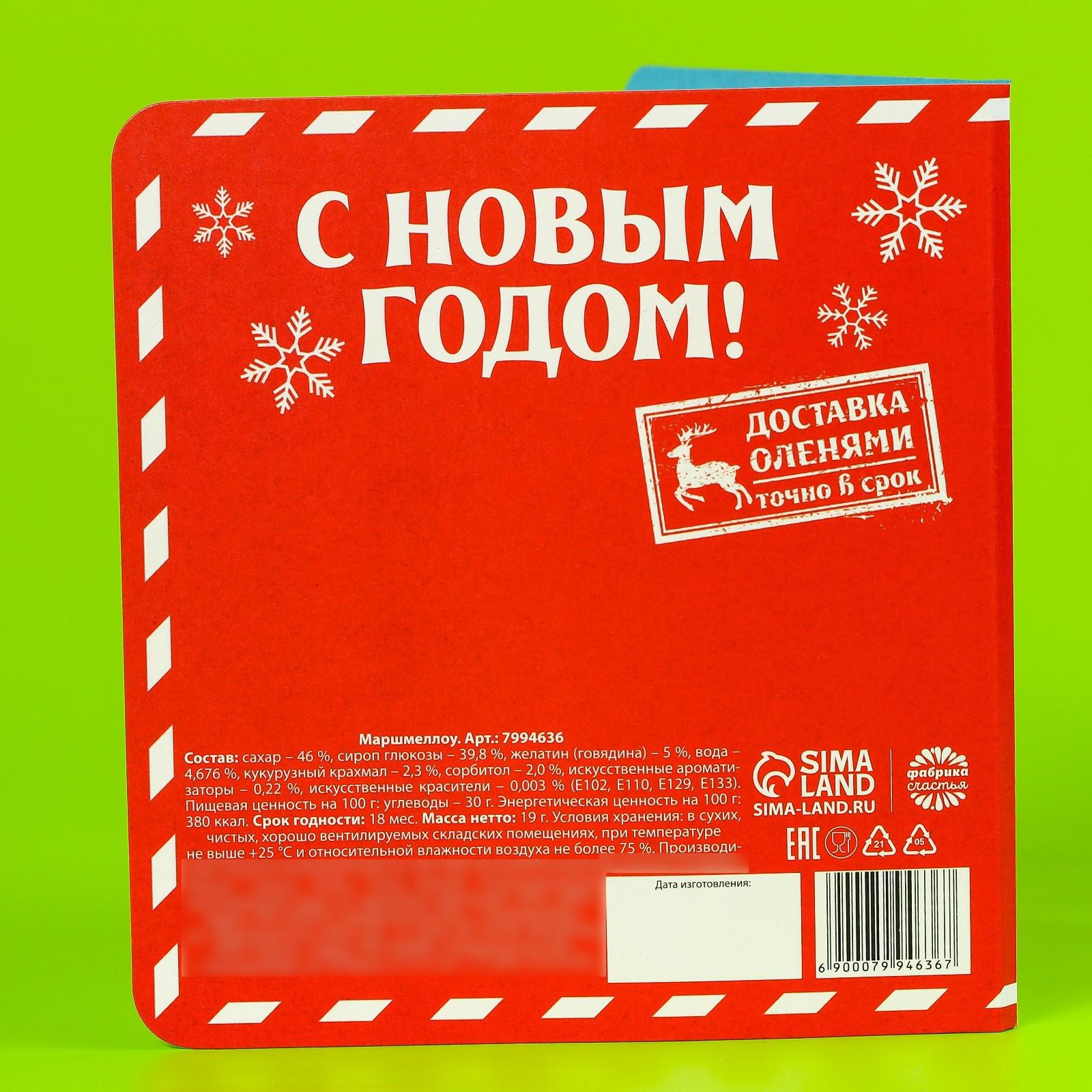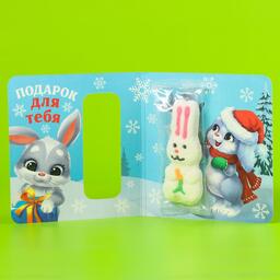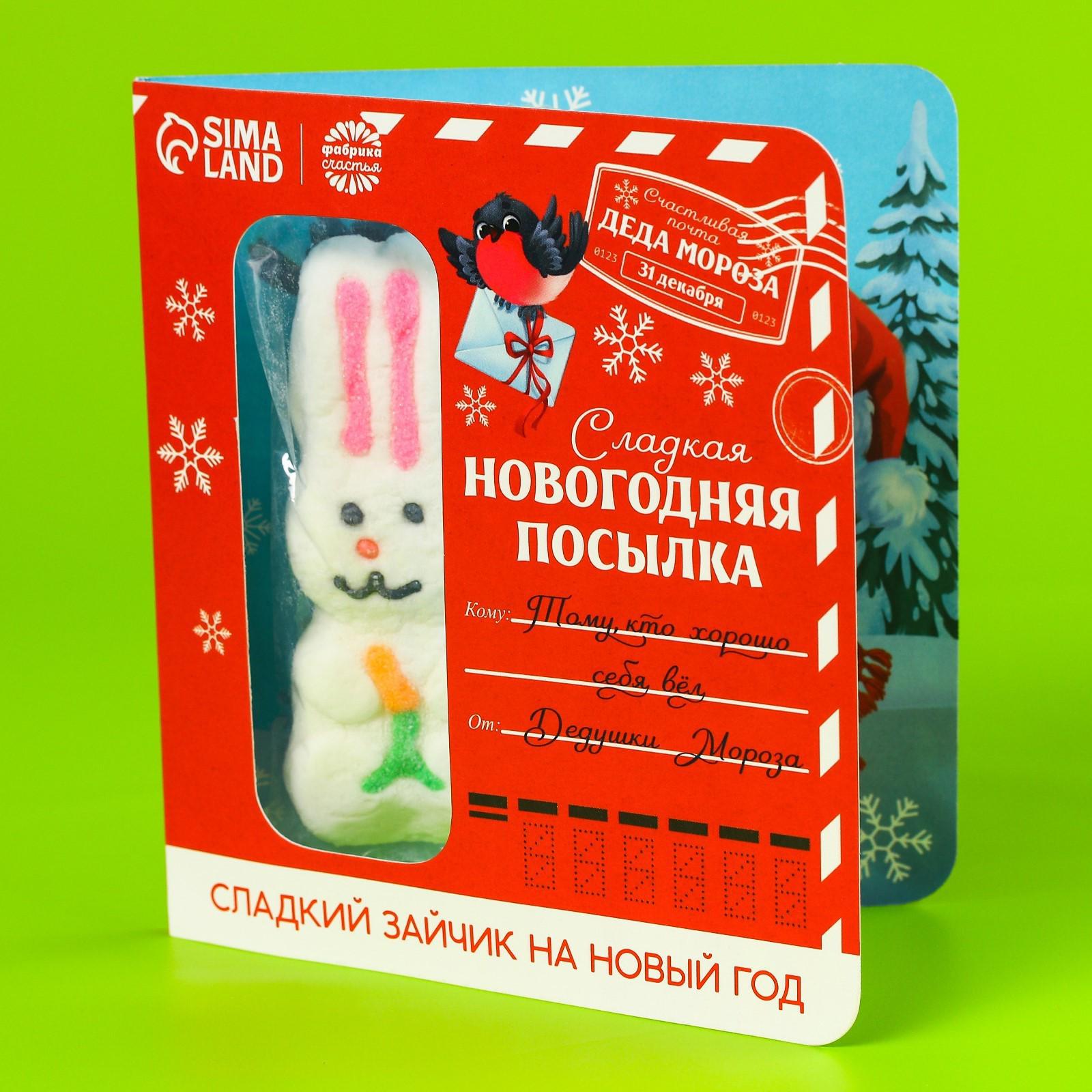 Маршмеллоу в форме зайцев на открытке «Новогодняя посылка»,1 шт. х 19 г.