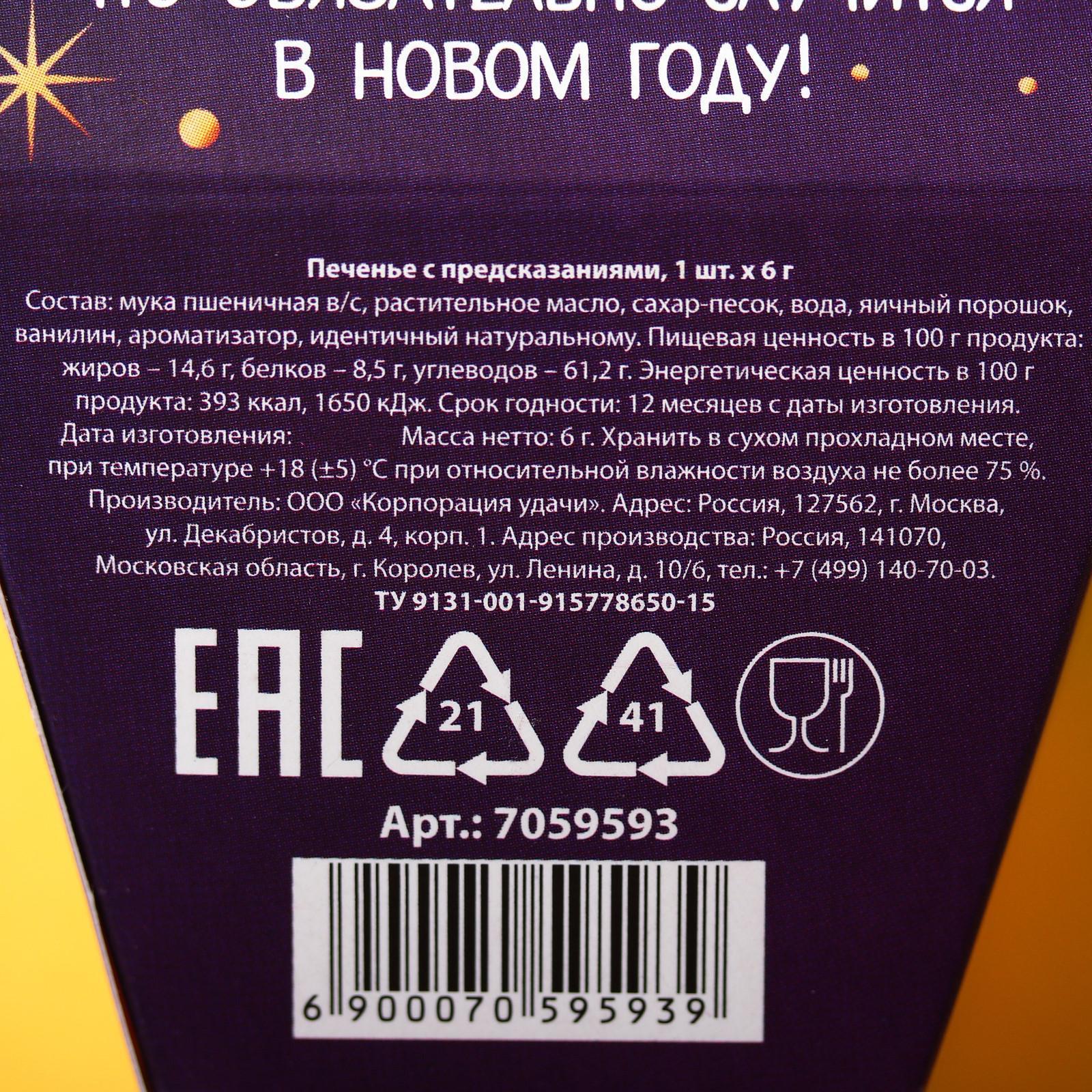 Печенье с предсказанием «Яркого нового года» 1 шт. x 6 г.