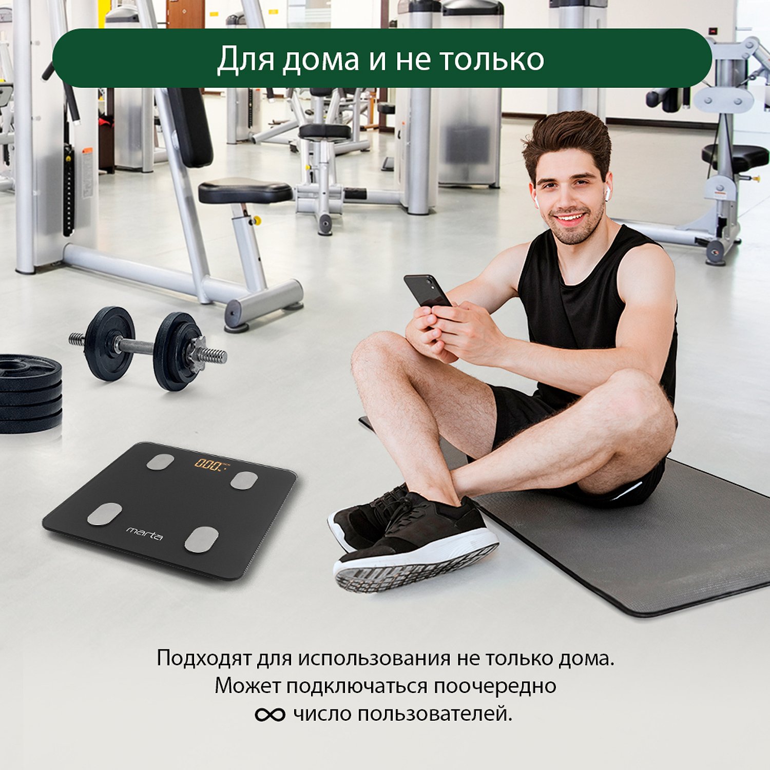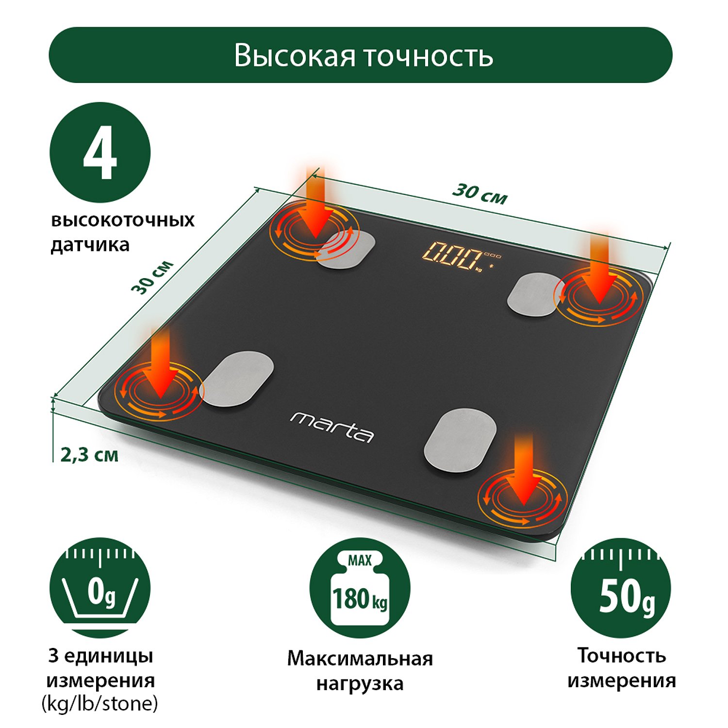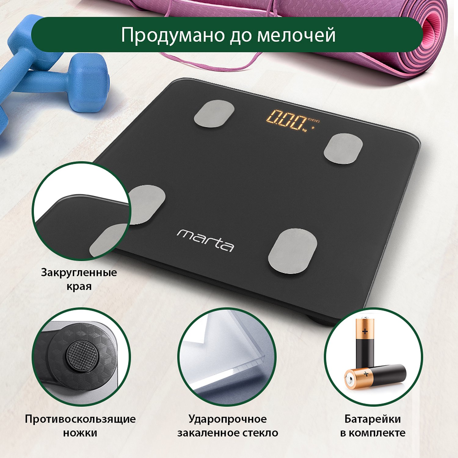Весы напольные MARTA MT-1606 LED диагностические Bluetooth серый графит 37279