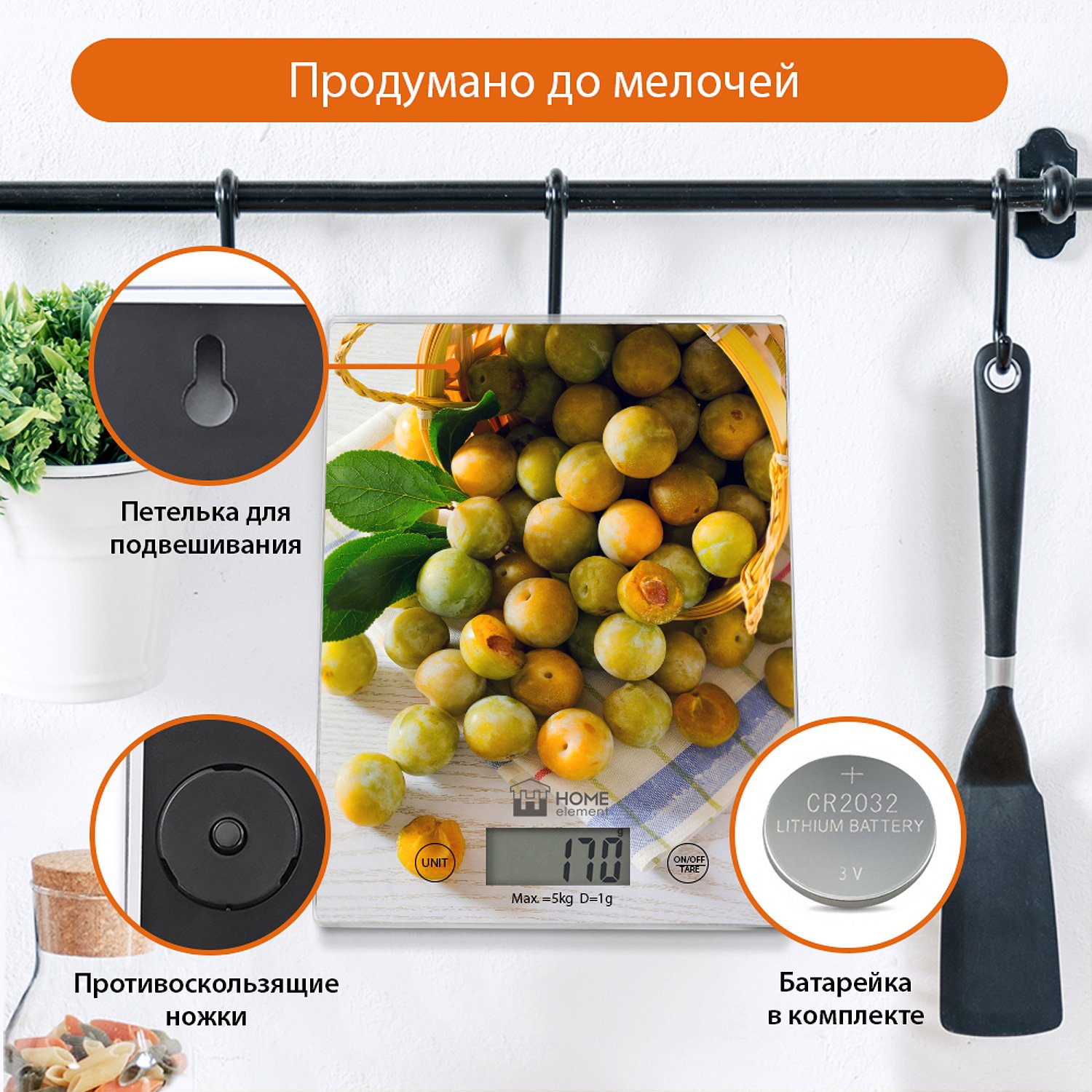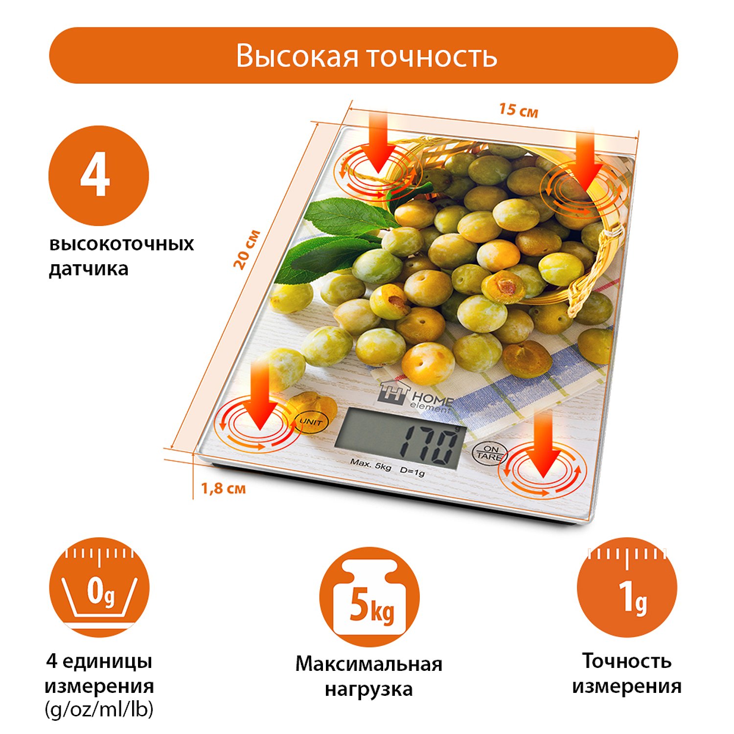 Весы кухонные HOME ELEMENT HE-SC935 сенсор и встроенный термометр 37301