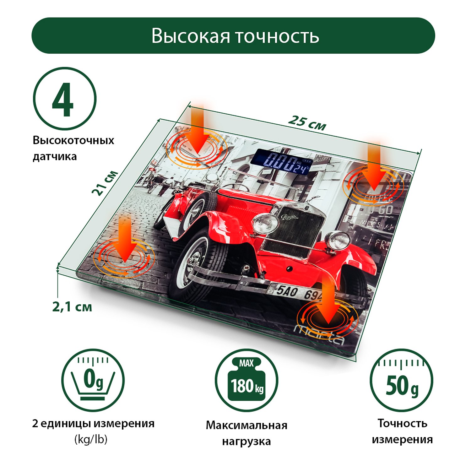 Весы напольные MARTA MT-SC1695 ретро автомобиль сенсор/встроенный термометр 38265