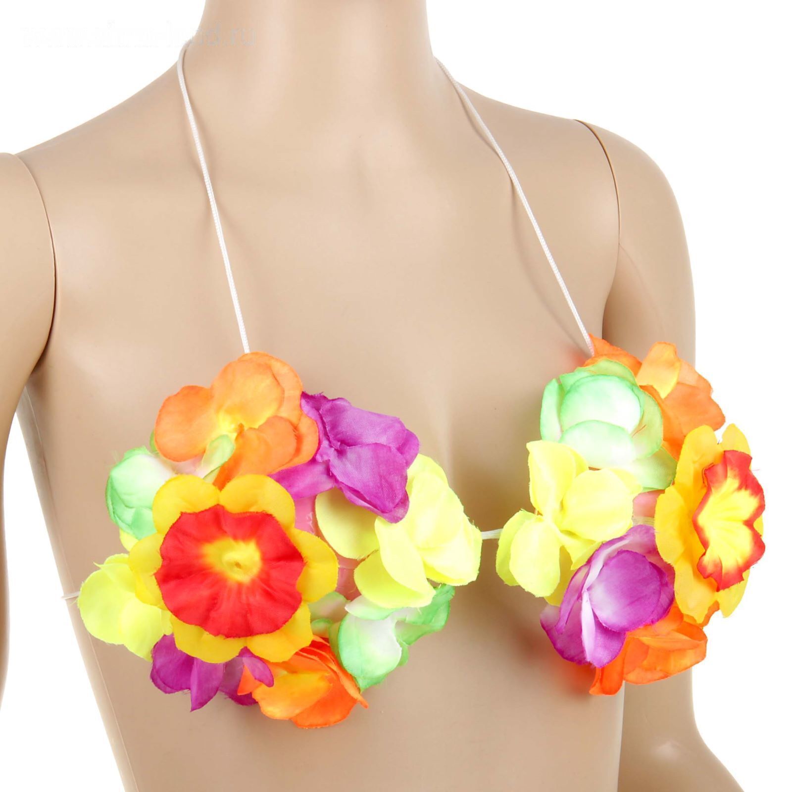 Решили устроить гавайскую вечеринку ? Много одежды для такого праздника не потребуется: жизнерадостные островитянки привыкли жить налегке. Поэтому, если праздник планируется возле любого водоёма, будь то бассейн или море, верх должен быть максимально открытым. Гавайский лиф подчеркнёт достоинства каждой красавицы. Сочные тона лифа как нельзя лучше передадут атмосферу тропического рая, а пышные бутоны цветов добавят формам объёма. Такие чашечки можно носить как самостоятельно, так и поверх купальника — в тропическом образе нет строгих правил и канонов. Останется добавить капельку цветочных духов, яркую помаду и лучезарную улыбку, и любой прохладный вечер превратится в жаркую тропическую ночь.