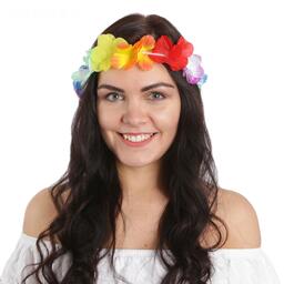 Венок незаменим, если вы хотите создать образ горячей островитянки, романтичной туземки. Цветочный ободок внесёт капельку южного тепла в любой наряд. Это незаменимый атрибут для вечеринки в гавайском стиле. Венок на резинке отлично тянется и хорошо сидит на голове — не спадёт во время жарких танцев. С такой красочной ноткой распущенные локоны заиграют по-новому, пышные бутоны в волосах выглядят совсем как живые. Останется добавить несколько капель цветочных духов, яркую помаду и, конечно, улыбку, и вы уже в самом сердце тропиков.