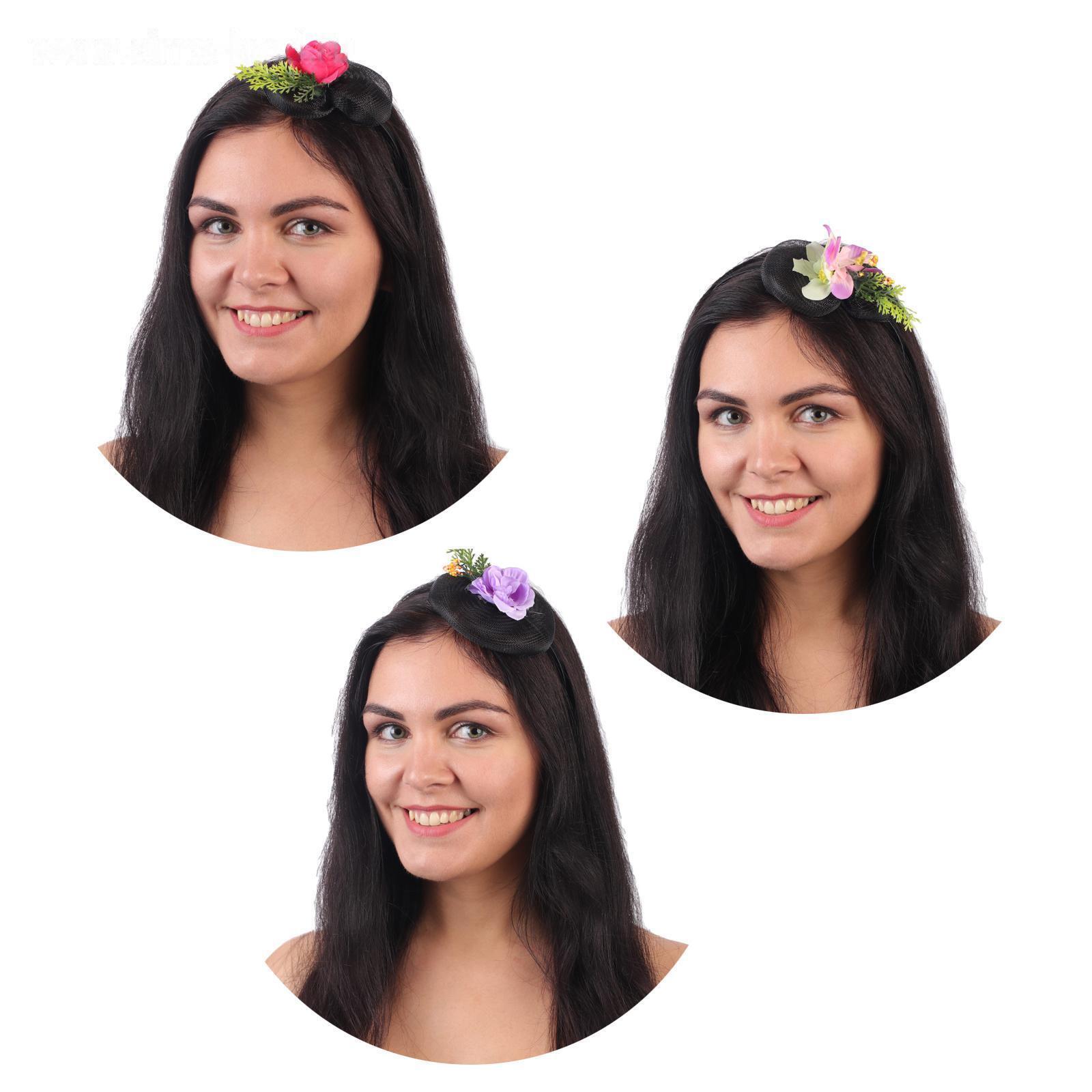 Гавайский ободок с вуалью «Цветы», цвета МИКС