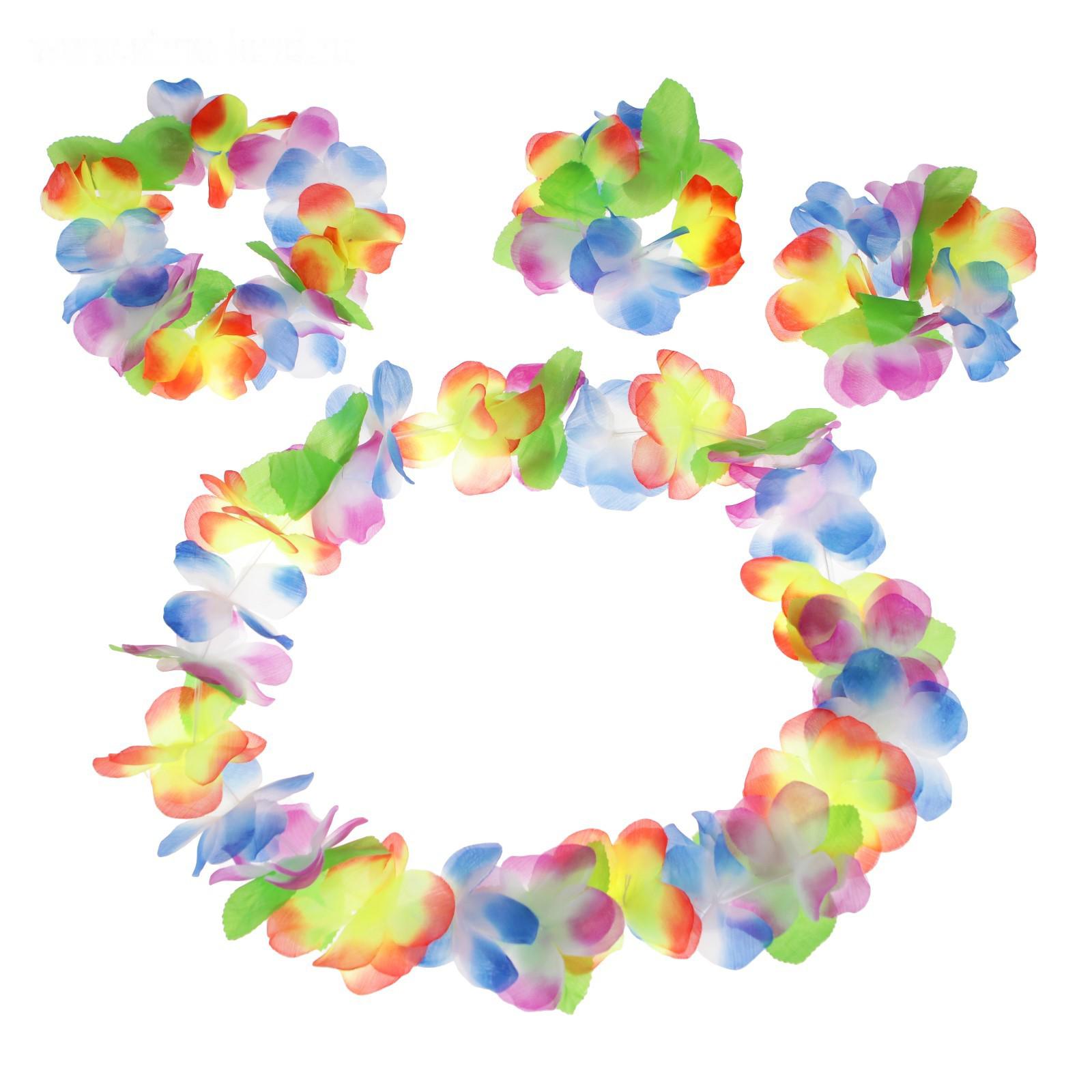 Набор гавайская тема 4 в 1: ожерелье, венок, 2 браслета, многоцветные цветы