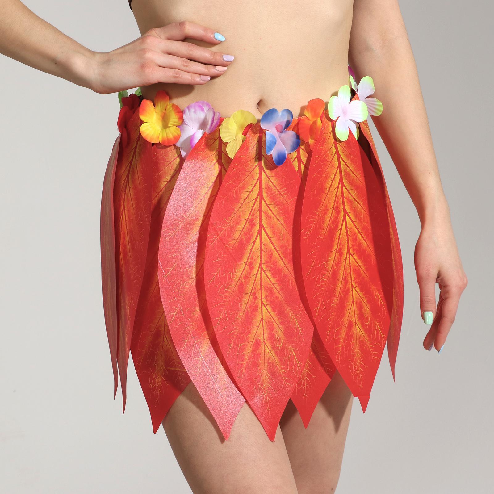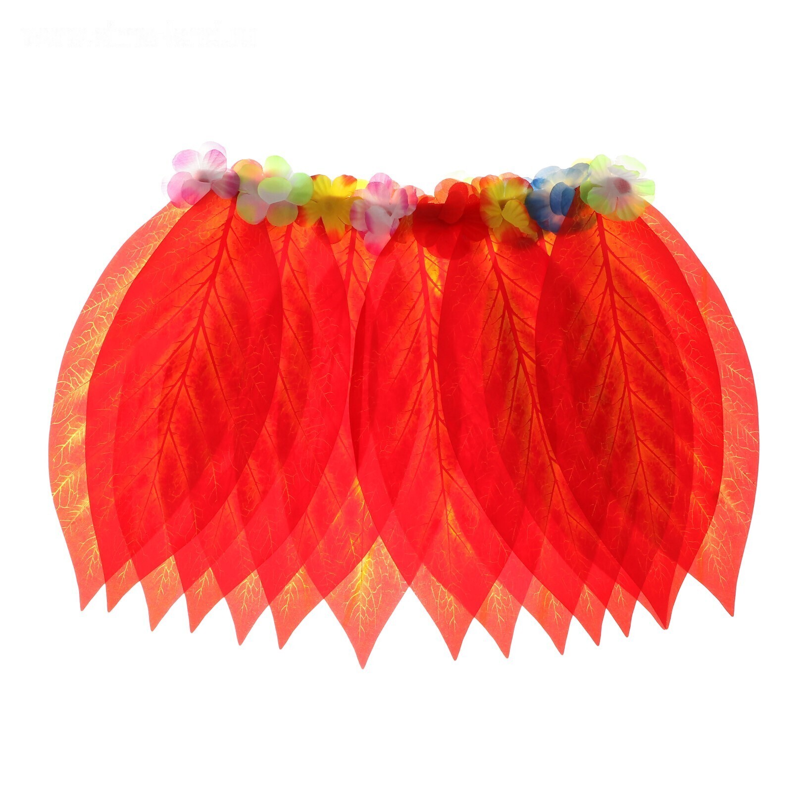 Гавайская юбка «Листики красные и цветочки» 36 см