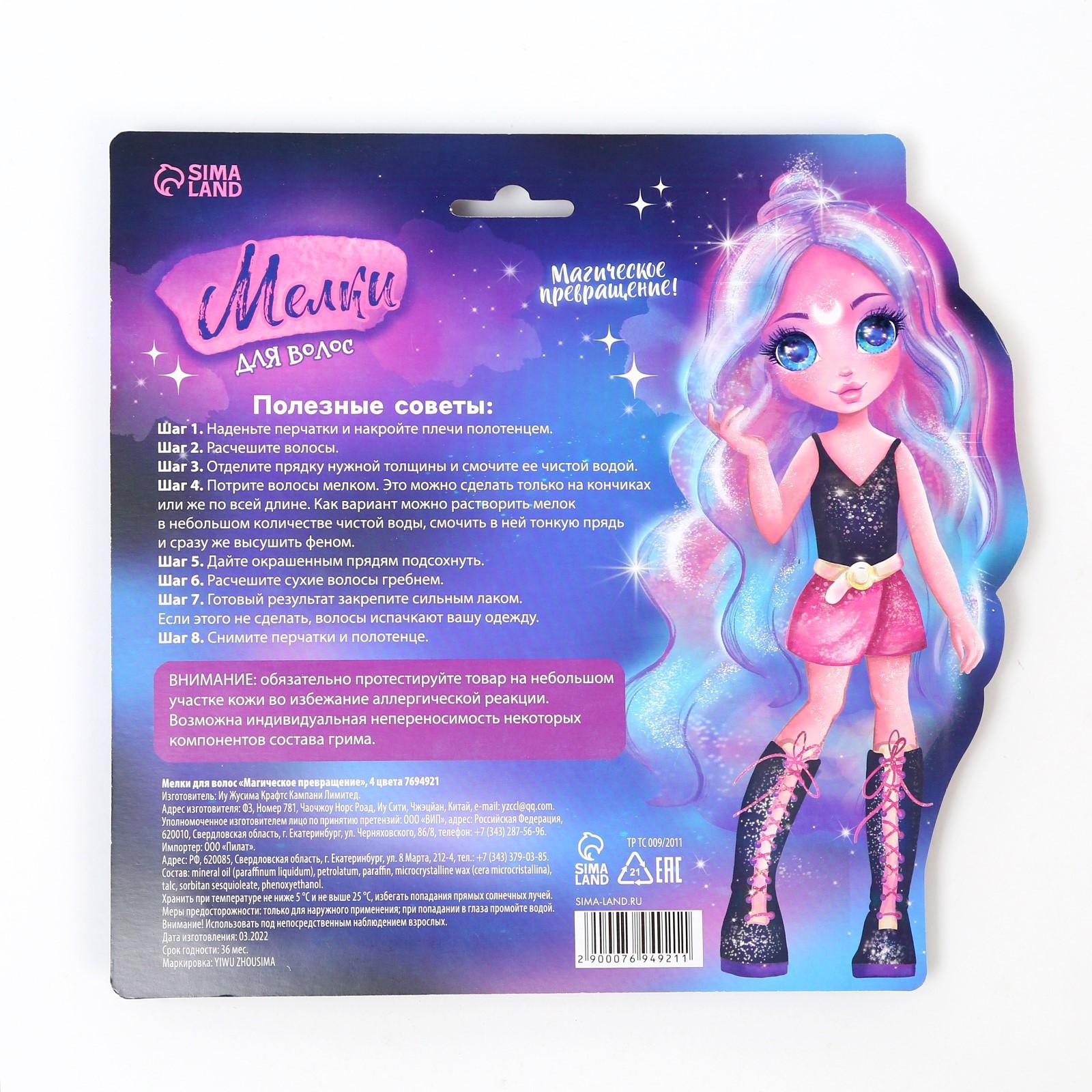 Мелки для волос «Магическое превращение», 4 цвета
