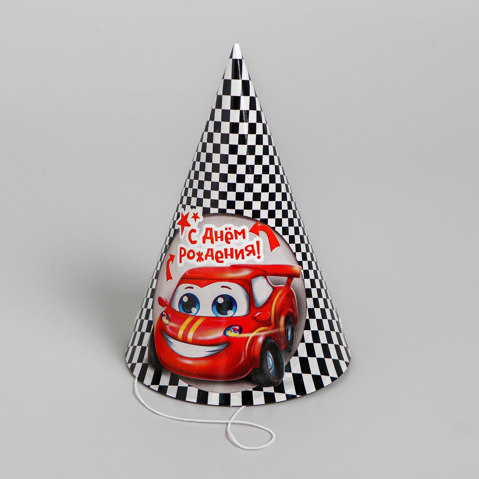 Колпак бумажный «С днём рождения», тачка, набор 6 шт.