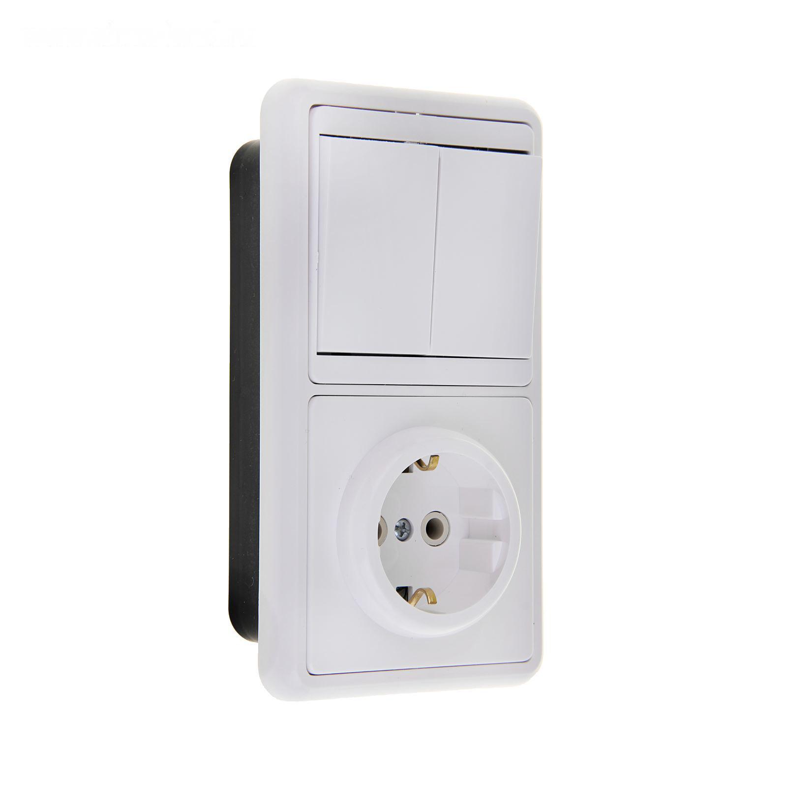 Розетка служит для подключения к сети электроприборов, а двухклавишный выключатель предназначен для управления освещением в помещении.