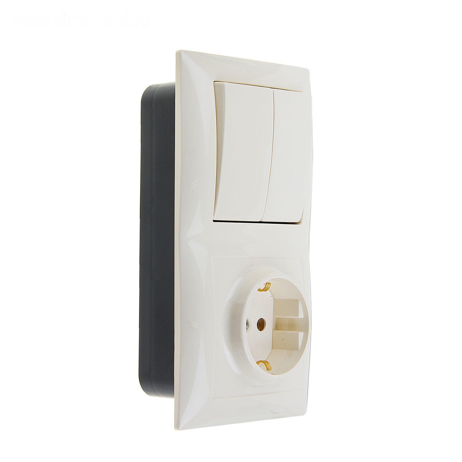 Розетка служит для подключения к сети электроприборов, а двухклавишный выключатель предназначен для управления освещением в помещении.