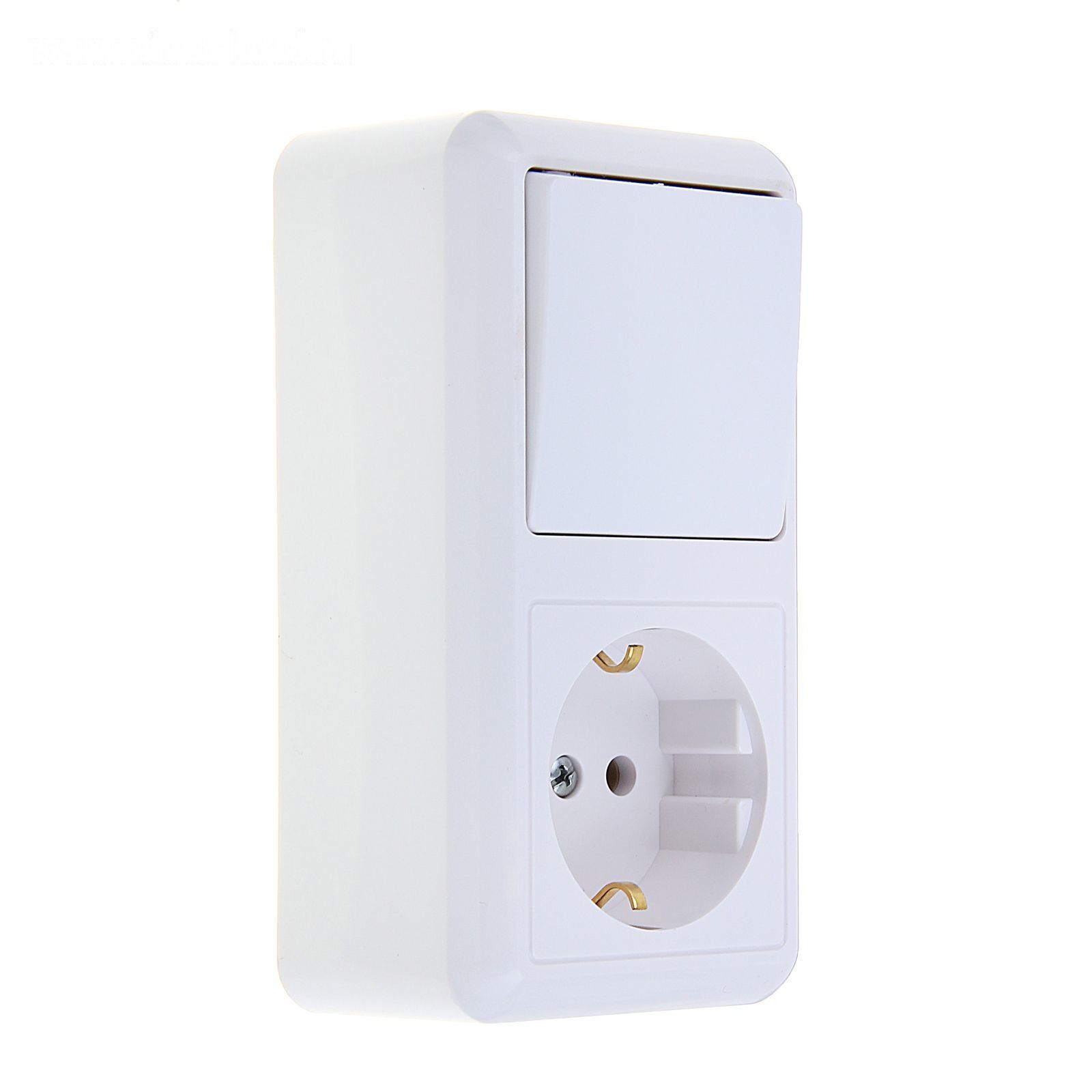 Розетка служит для подключения к сети электроприборов, а одноклавишный выключатель предназначен для управления освещением в помещении.