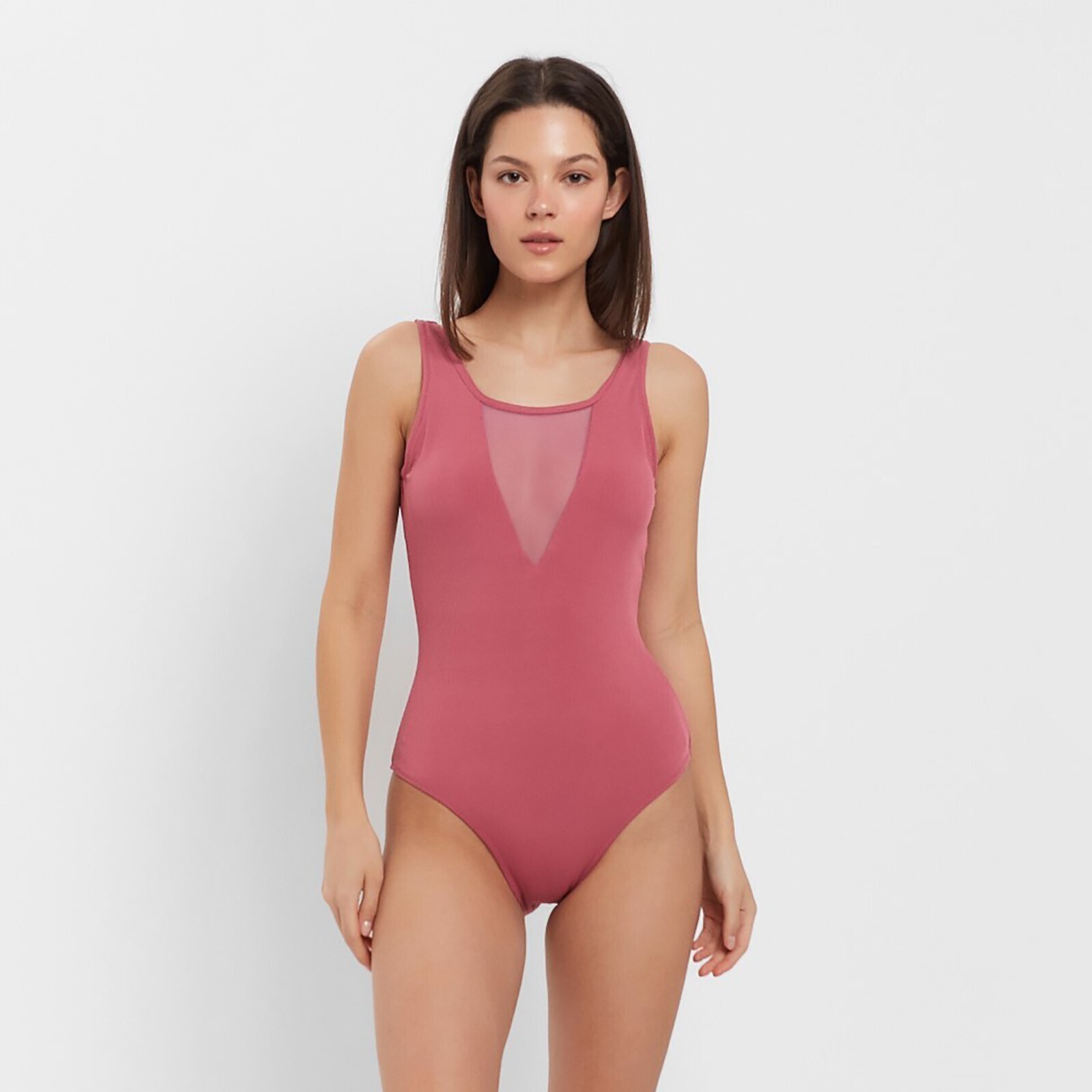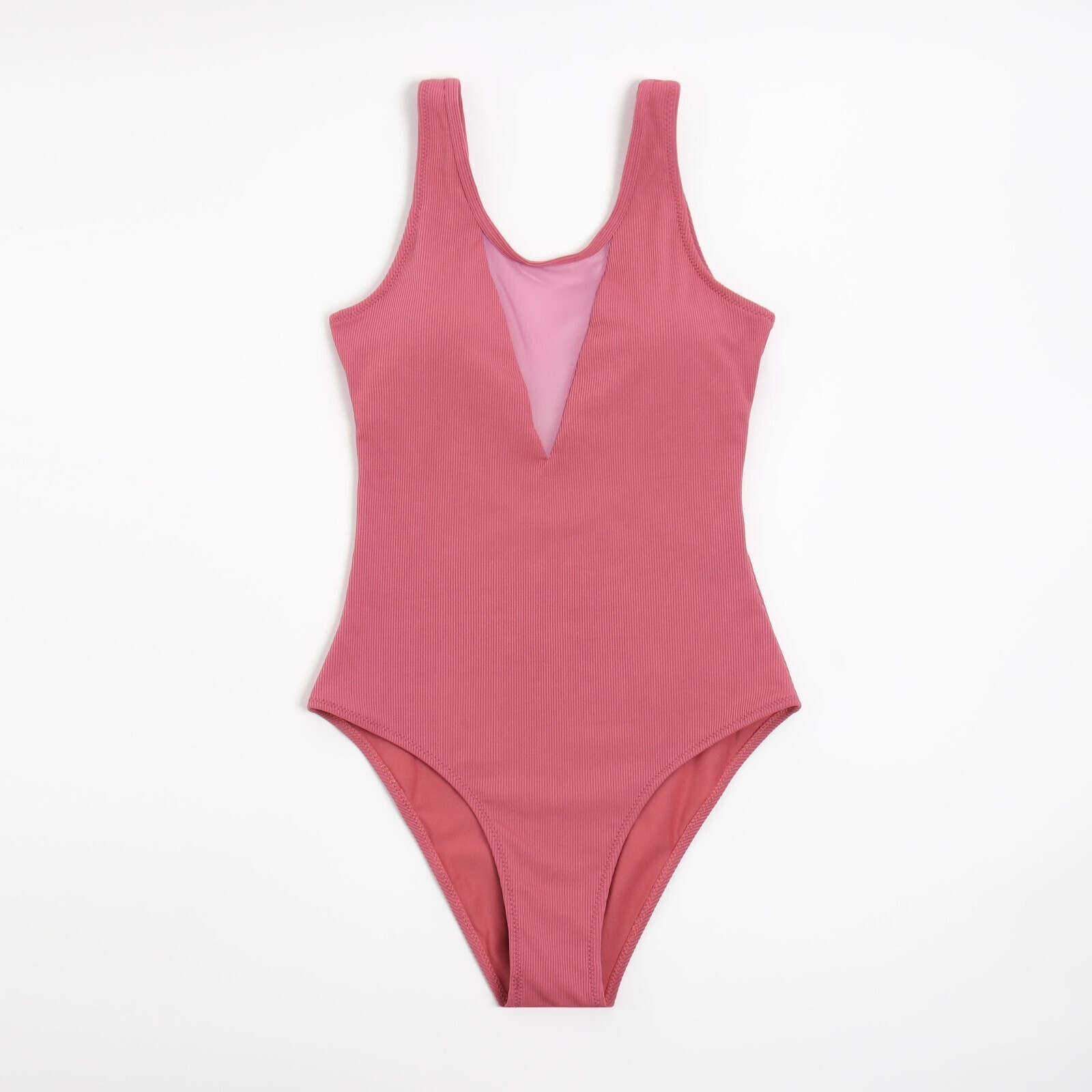 Купальник женский слитный в рубчик MINAKU однотонный цвет розовый, размер 42