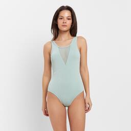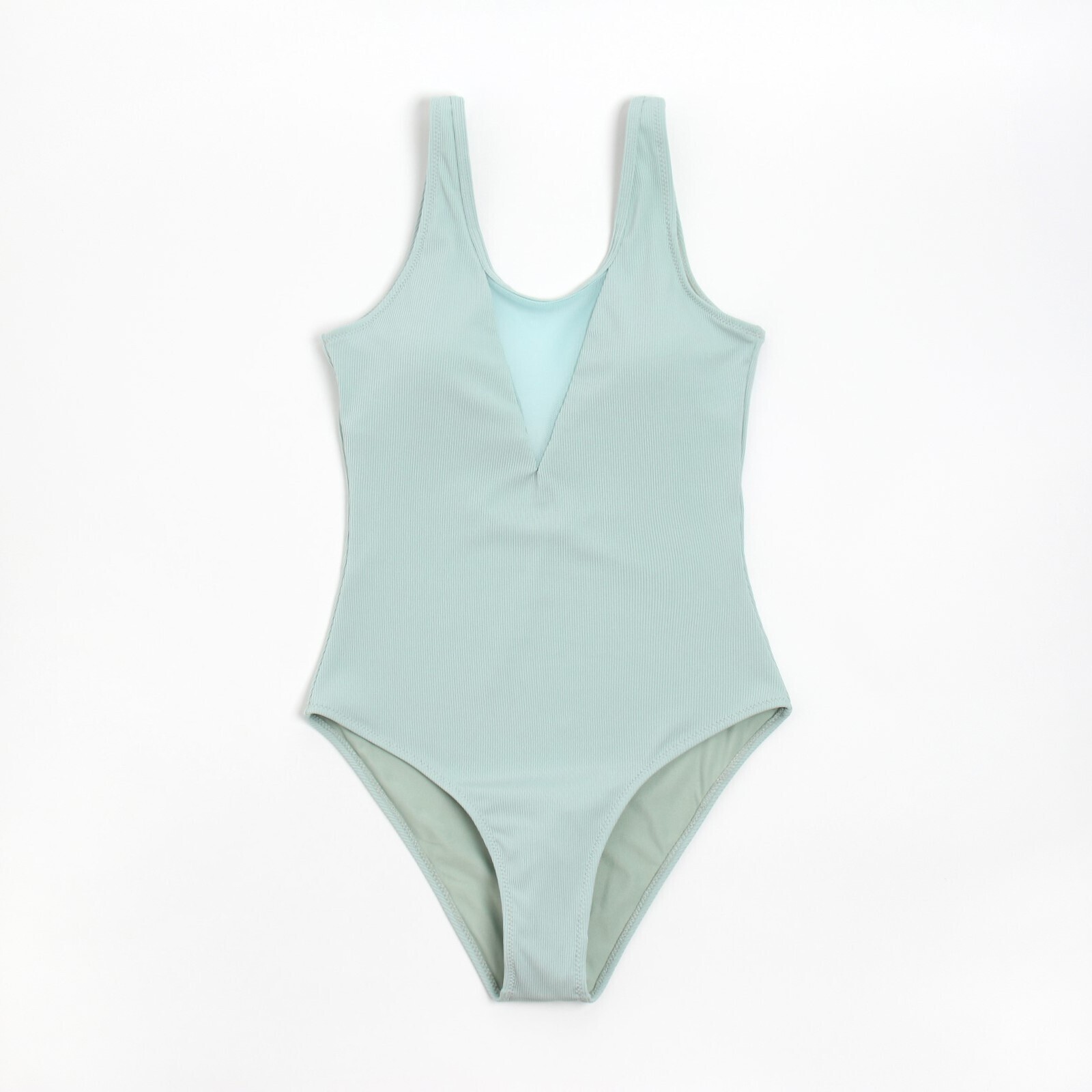 Купальник женский слитный в рубчик MINAKU однотонный цвет светло-зелёный, размер 42