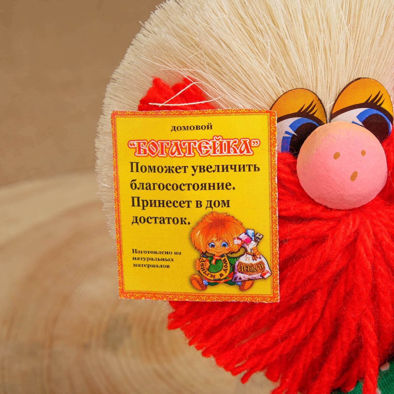 Каждый домовёнок уникален и имеет своё значение и смысл. Изготовлены домовые и обереги из природных материалов и по старинным технологиям. Для их создания используют такие материалы как, древесина, мешковина, сизаль, цветы, семечки и другие декоративные элементы. Все эти материалы в особом сочетании приносят успех, достаток, любовь, благополучие, как в домашнее, так и офисное помещение.