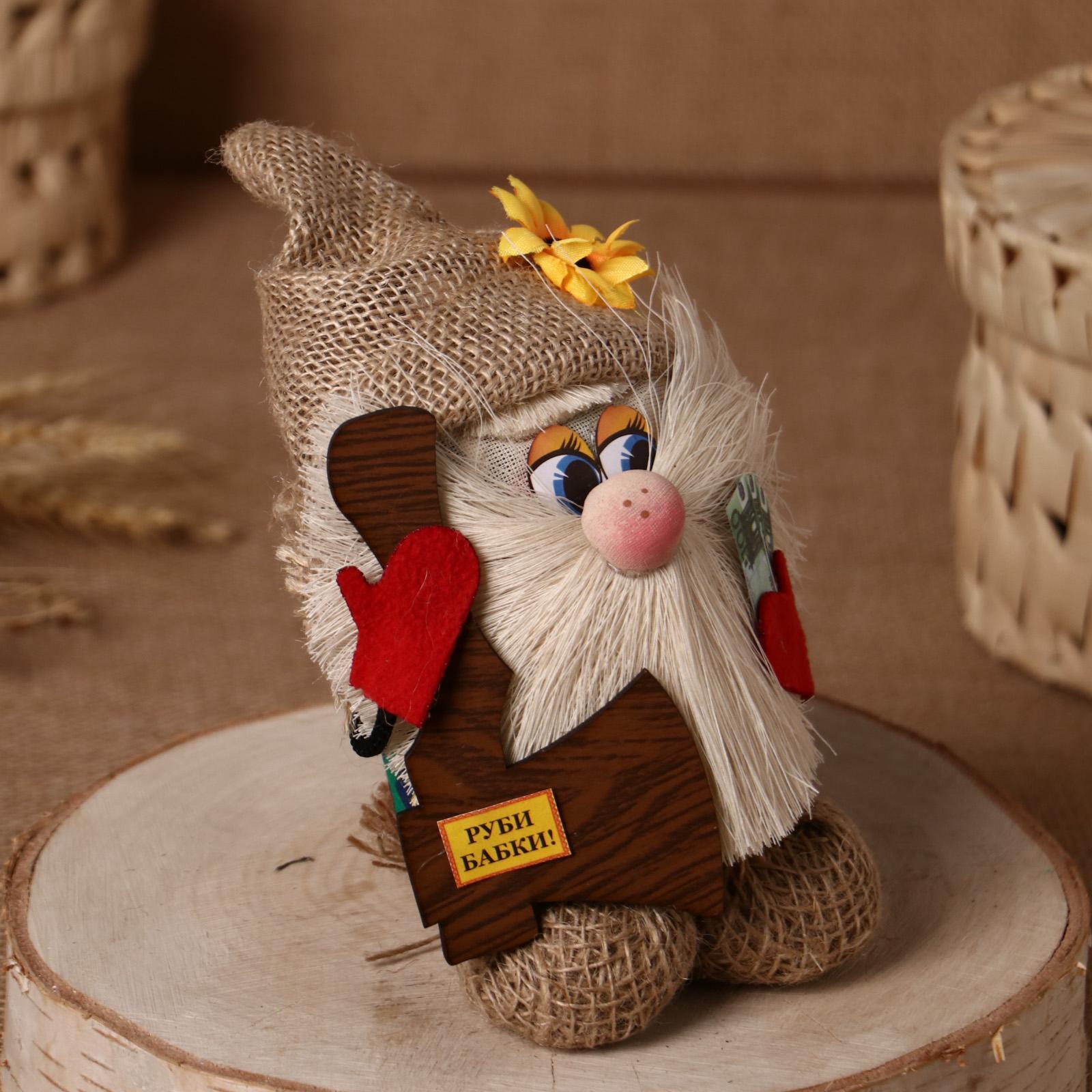Оберег-домовой "Василек в льняном колпаке, с топором", 23х15х8 см, микс
