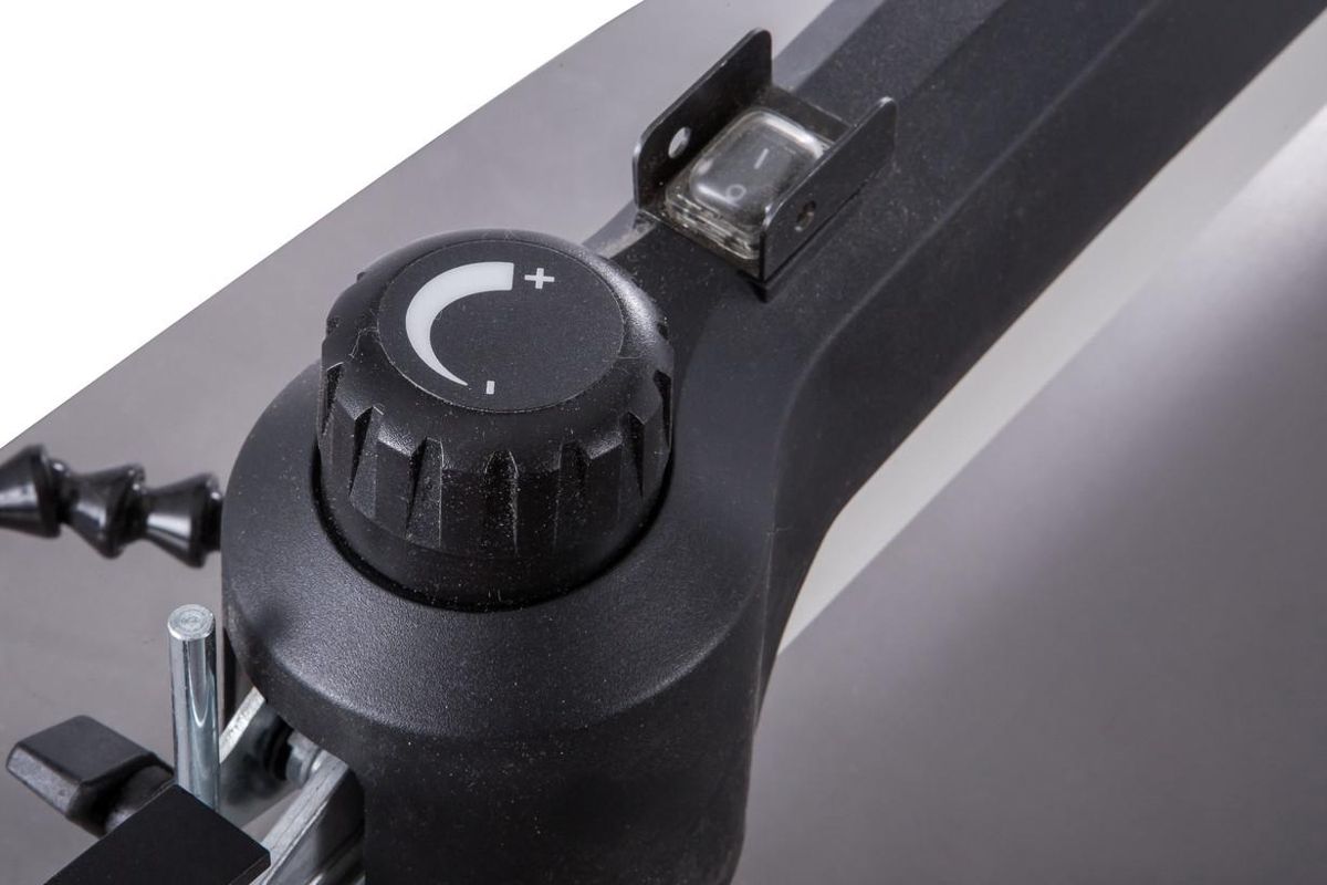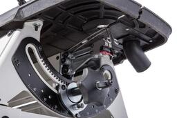 Станок оборудован параллелограммным механизмом привода качающейся части, который имеет ряд особенностей. Во-первых, верхняя часть рамы поднимается, что удобно при наладке или установке заготовки. В верхнем положении она фиксируется и не требует удерживания. Нижнее положение можно корректировать вращением рукоятки, подстраивая под длину пилки и толщину детали. Во-вторых, предусмотрен режим работы с продольной подкачкой пильного полотна (так называемый маятниковый ход), который обеспечивает более «агрессивное» и производительное пиление. В зависимости от требований к скорости, точности и чистоте распила настраивают амплитуду продольных движений в диапазоне от нуля и до максимальной величины. Процедура выполняется поворотом моторного модуля вокруг оси.