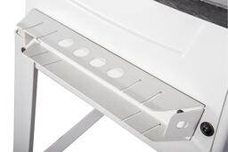 Для сдува опилок с разметки предусмотрен регулируемый воздуховод и помпа, для пылеотсоса 38-миллиметровый патрубок и набор отверстий в столе.
