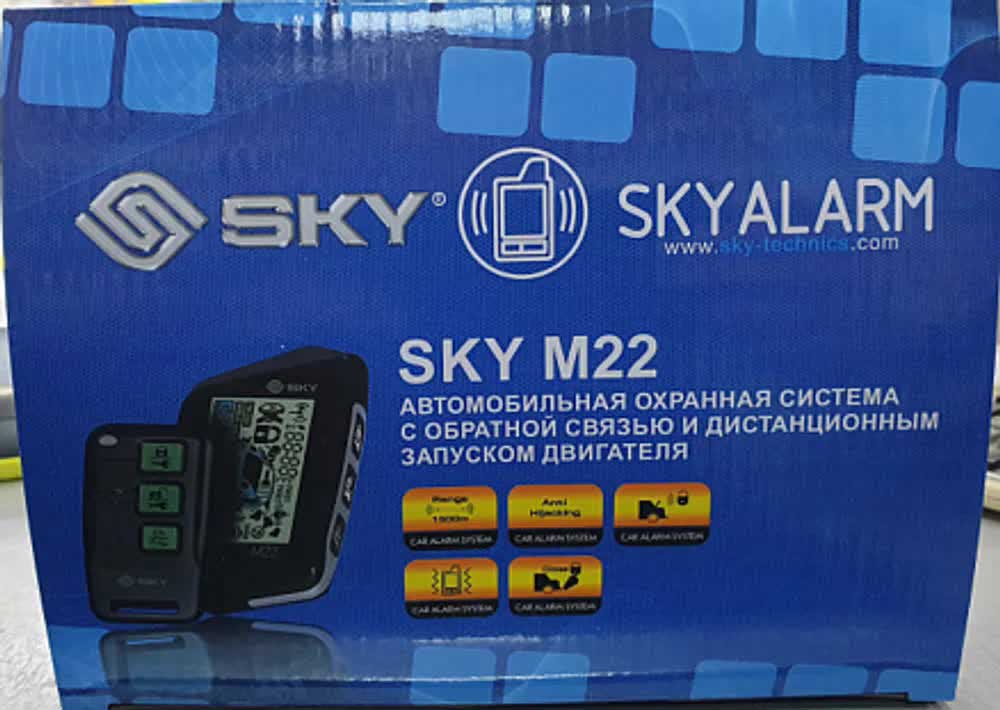 Автосигнализация SKY M22 - имеет двухстороннюю связь, автозапуск, турботаймер, 2 брелока.