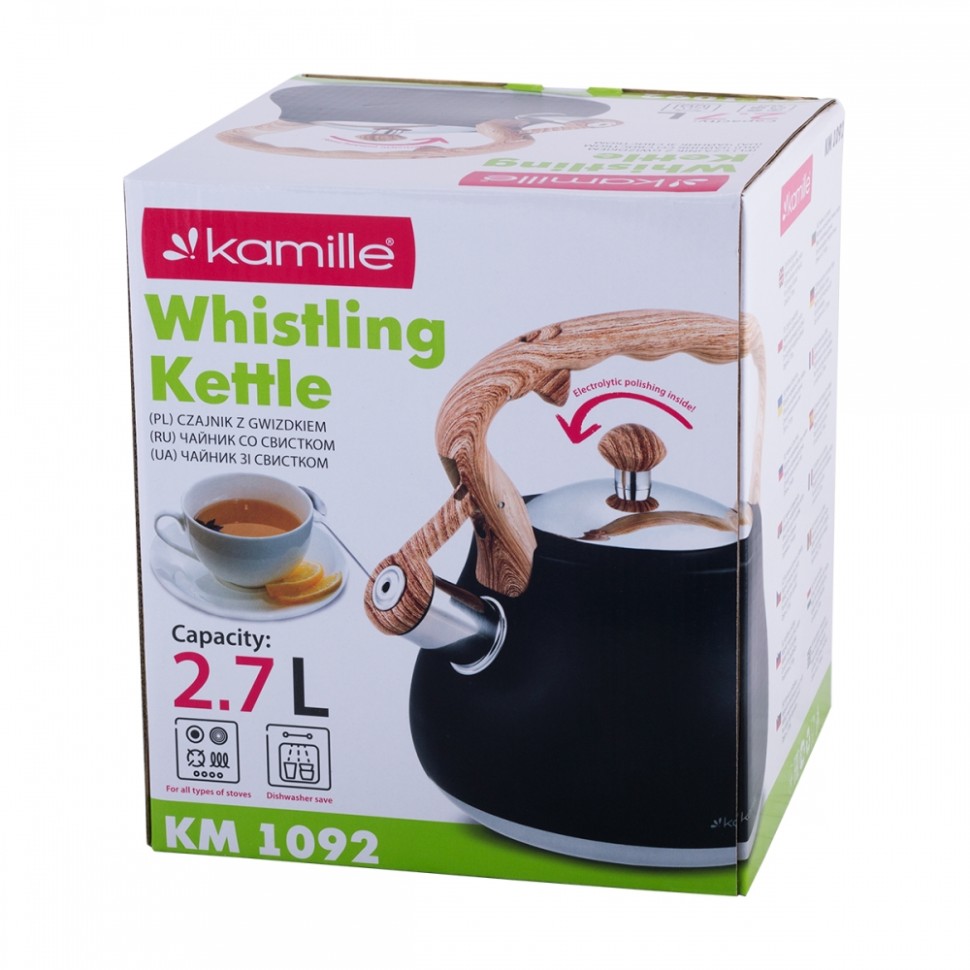 Нарушена упаковка! <309752> Чайник 2,7л из нержавеющей стали со свистком и нейлоновой ручкой Kamille 1092