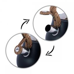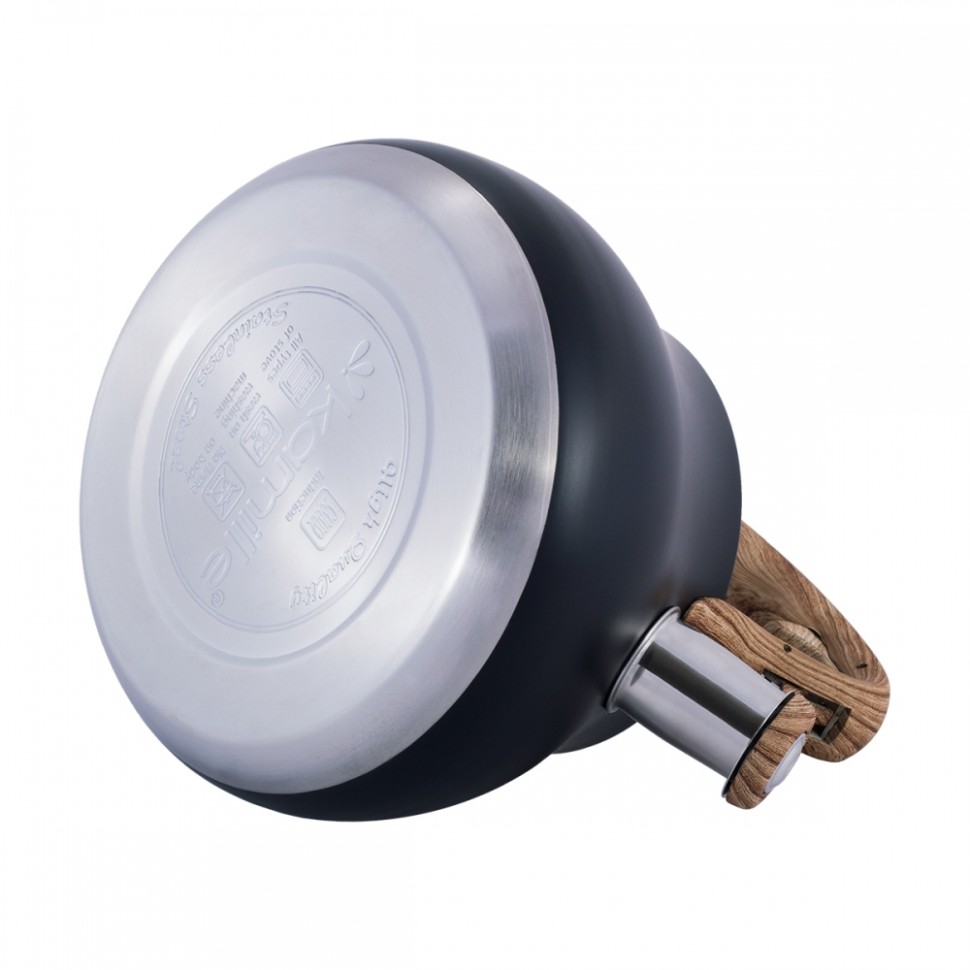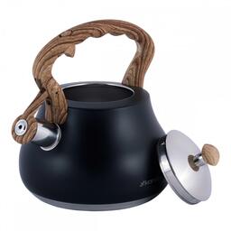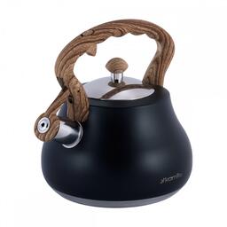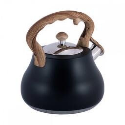 Заводская упаковка нарушена или отсутствует. Товар НОВЫЙ, в полной комплектации. / Материал: нержавеющая сталь. Общий объем: 2,7л. Полировка металла: сатин/зеркальная. Цвет чайника: черный. Цвет ручки: "под дерево". Материал ручки: нейлон с покрытием "soft-touch". Материал крышки: нержавеющая сталь. Диаметр дна (снаружи): 16,5см. Высота (с ручкой): 23см. Тип ручки: фиксированная. Свисток: есть. Особенность: электролитическая внутренняя полировка. Подходит для индукционных плит: да. Подходит для мытья в посудомоечной машине: да. Упаковка: цветная картонная коробка 20*23*20см.