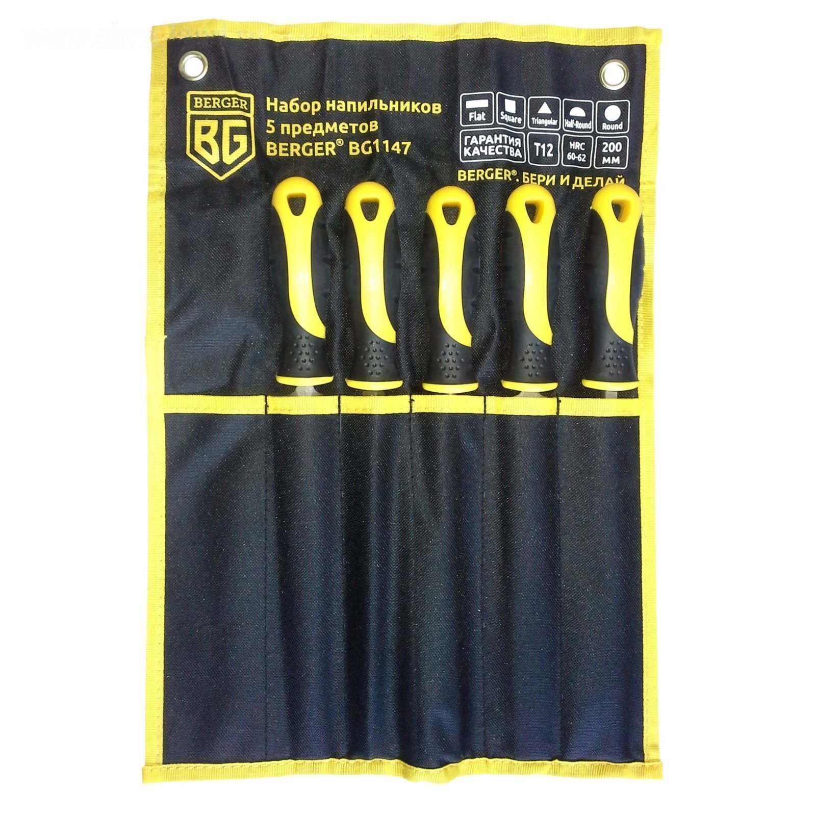 Набор напильников BERGER, с рукояткой 5 предметов