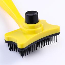 Пуходерка пластиковая "Косточка" с самоочисткой, 8,5 х 12,5 см, жёлтая