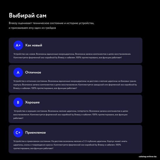 Смартфон восстановлен по программе Breezy. Класс восстановленного устройства A. Класс устройства говорит о состоянии смартфона после восстановления. К классу A относятся устройства, которые близки к новому состоянию. Возможны единичные микроцарапины. Возможны мелкие царапины на боковых гранях.Зарядное устройство отсутствует в комплектации с осени 2020 года.Смартфон восстановлен по программе Breezy. Класс восстановленного устройства A. Класс устройства говорит о состоянии смартфона после восстановления. К классу A относятся устройства, которые близки к новому состоянию. Возможны единичные микроцарапины. Возможны мелкие царапины на боковых гранях.Зарядное устройство отсутствует в комплектации с осени 2020 года.