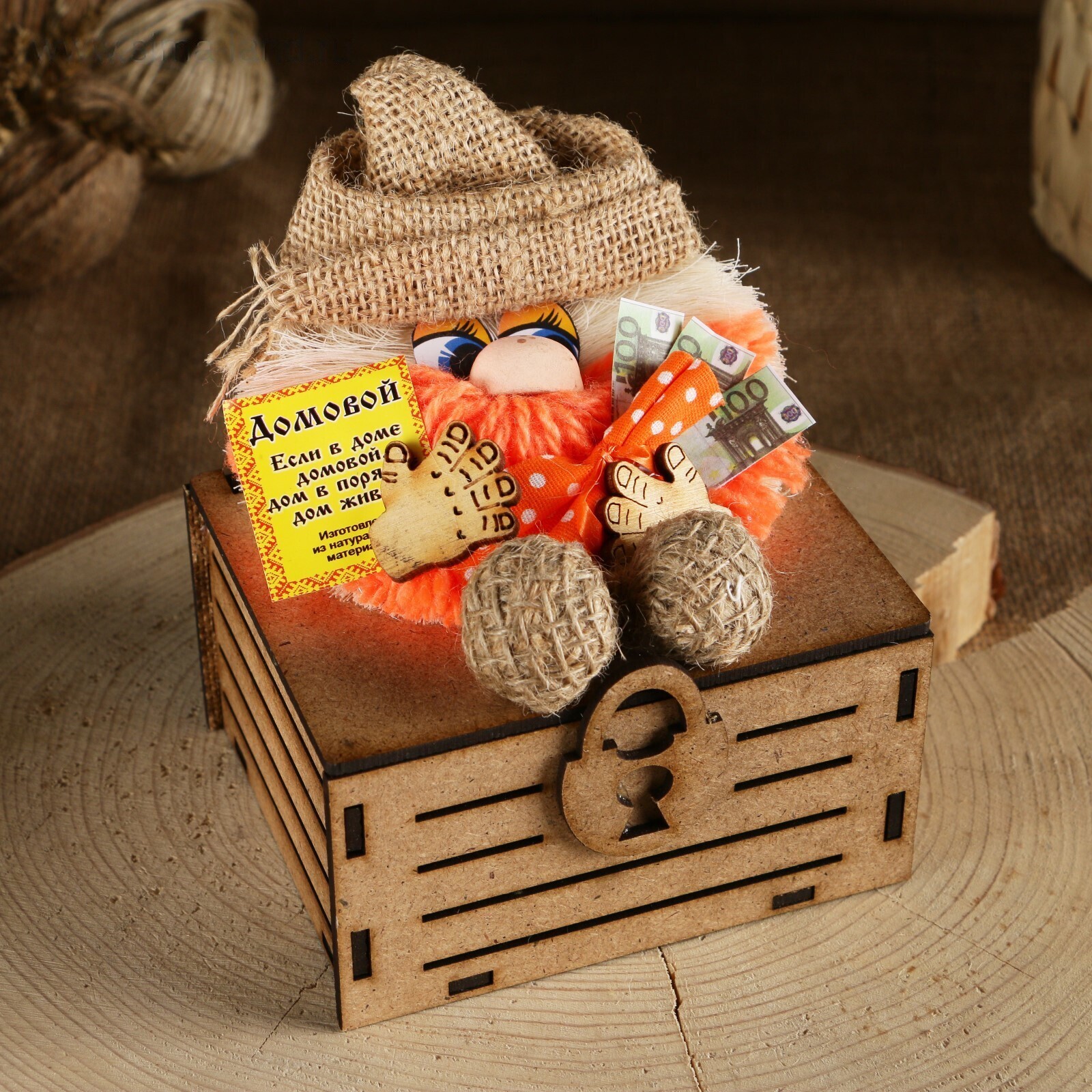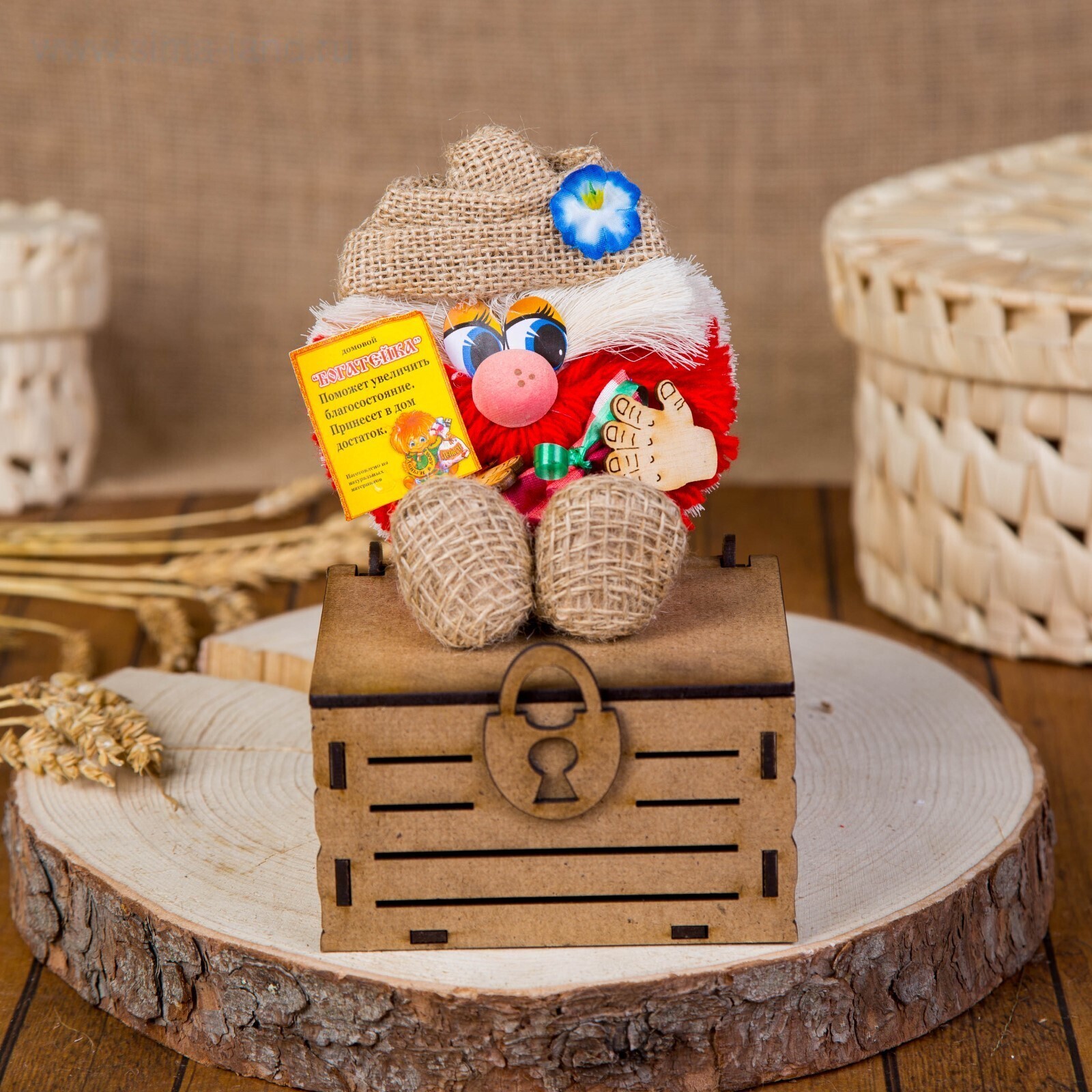 Оберег-домовой "Богатейка на сундуке, в колпаке", 20х14х10 см МИКС