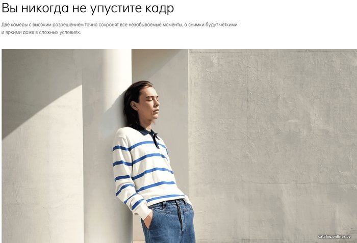 • Характеристики блока камер 50 Мп, f/1.8, 27мм, 77°, широкоугольный2 Мп, f/2.4, 88.8°, датчик глубины