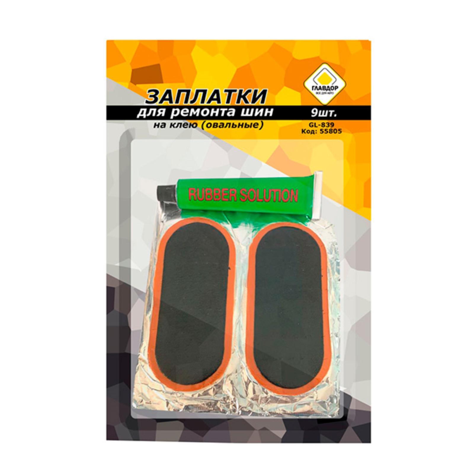 Заплатки для ремонта шин на клею "ГЛАВДОР", GL-839, овальные, 9 шт