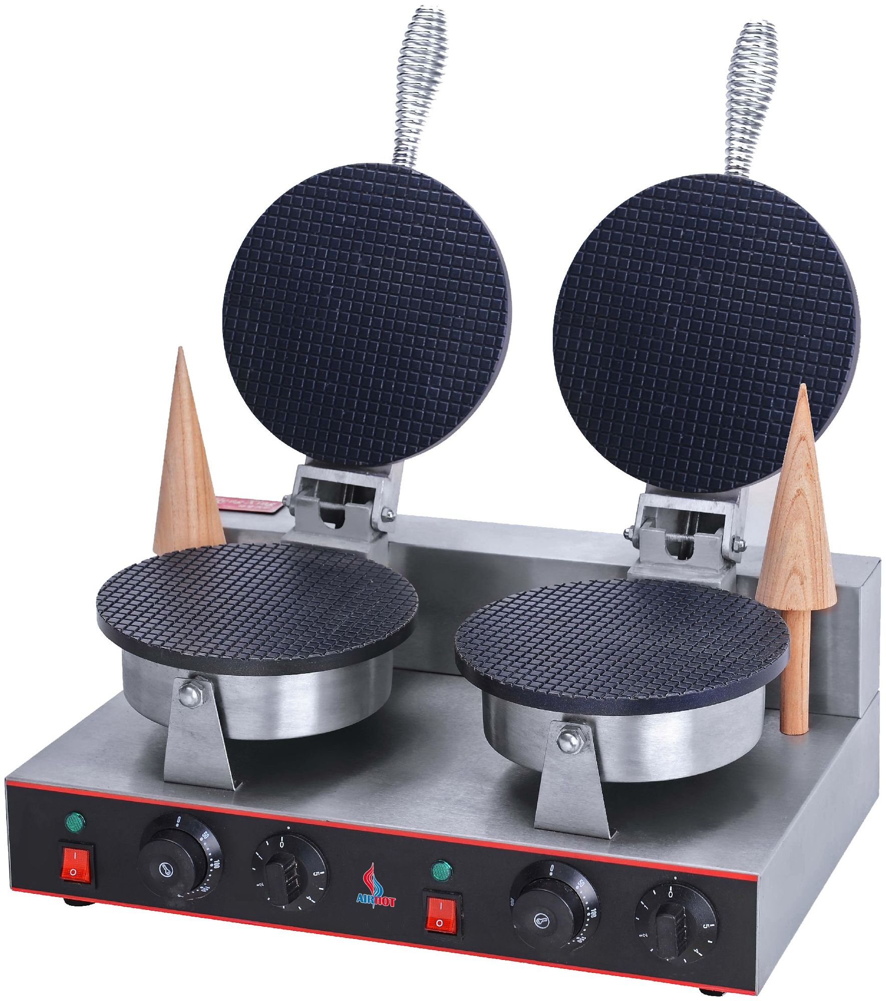 Вафельница Airhot WE-1SD применяется для выпекания тонких вафель. Оснащена терморегулятором и электронным таймером. Корпус изготовлен из нержавеющей стали, жарочная поверхность выполнена из чугуна с антипригарным покрытием. Толщина вафли составляет 3 мм.