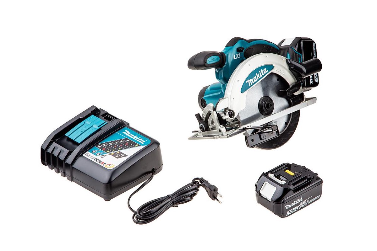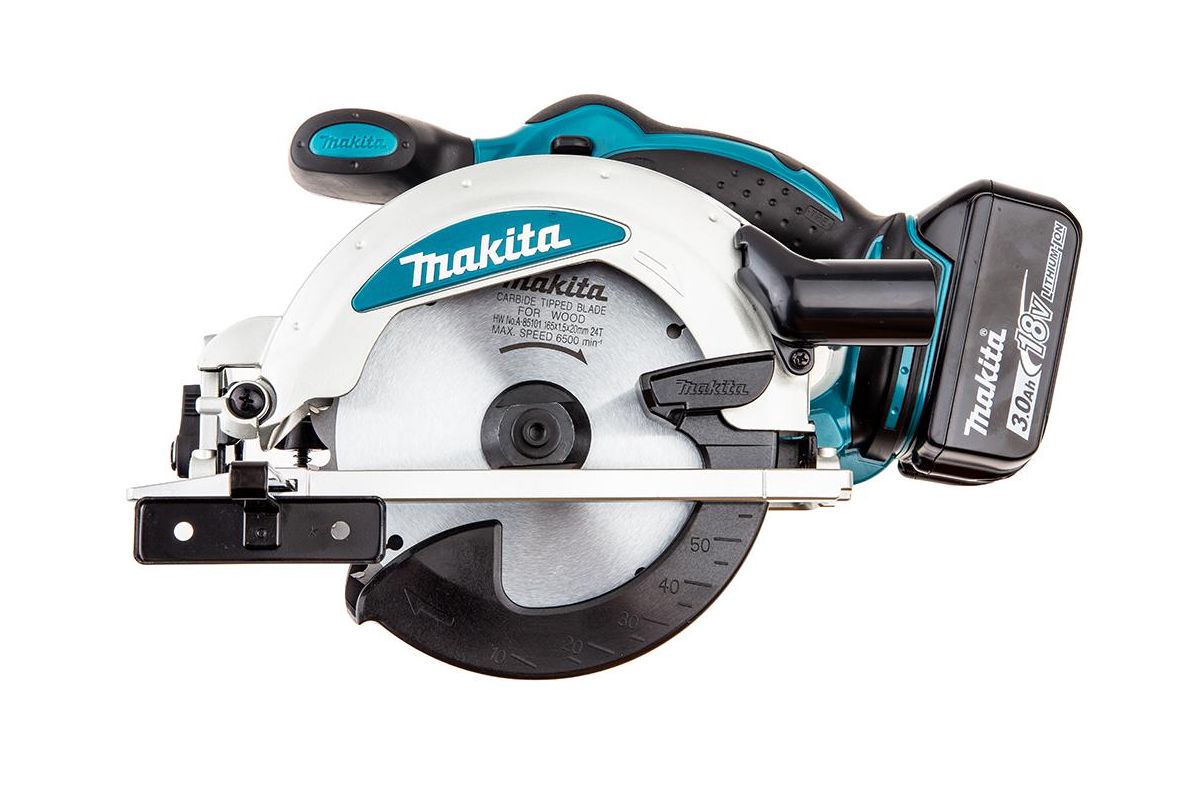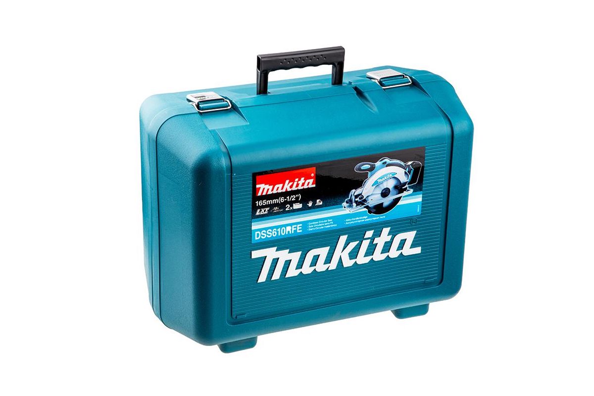 Аккумуляторная циркулярная пила MAKITA DSS610RFE распилит дерево, ДСП, паркет, ламинат и т.д. Диск 165 мм. Максимальная глубина пропила 57 мм. Для питания инструмента используется аккумулятор 18 В / 3 Aч. В комплекте 2 аккумулятора.