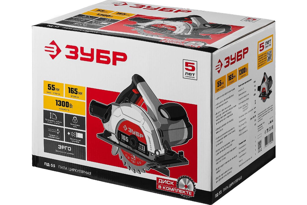 Пила дисковая ЗУБР ПД-55 90°-55 мм, диск 165 мм, 1300 Вт