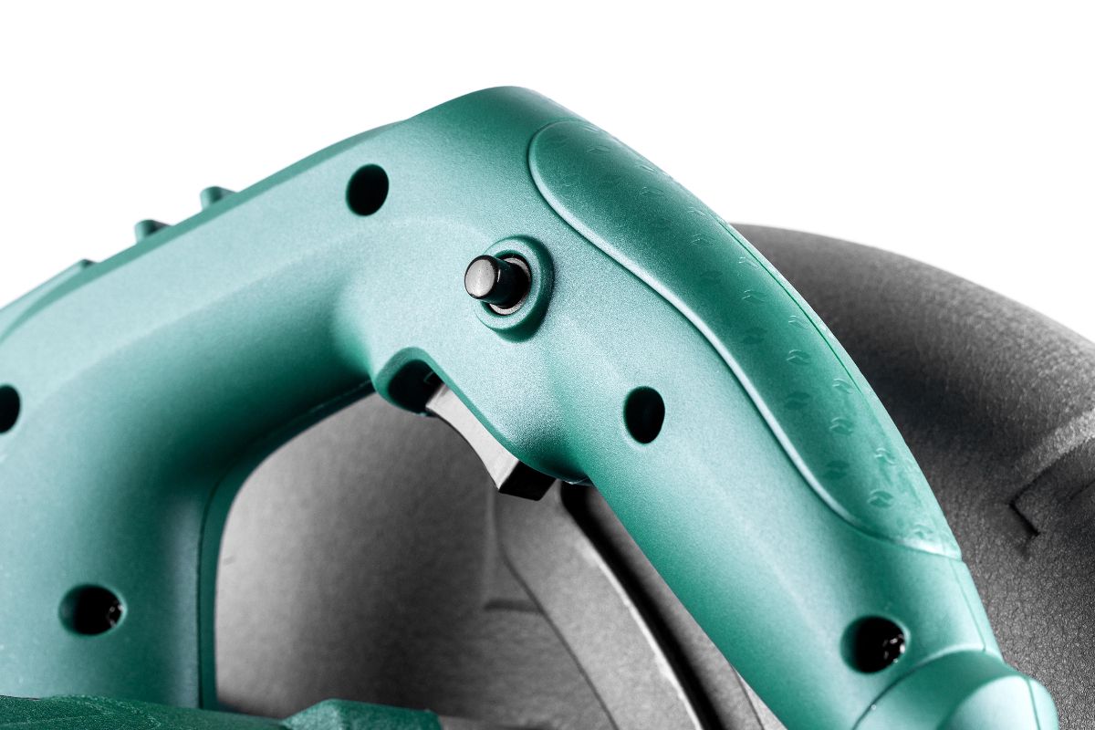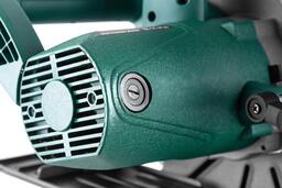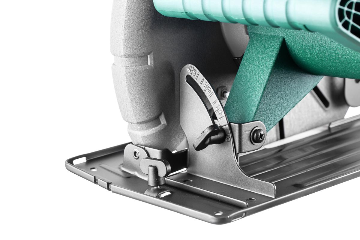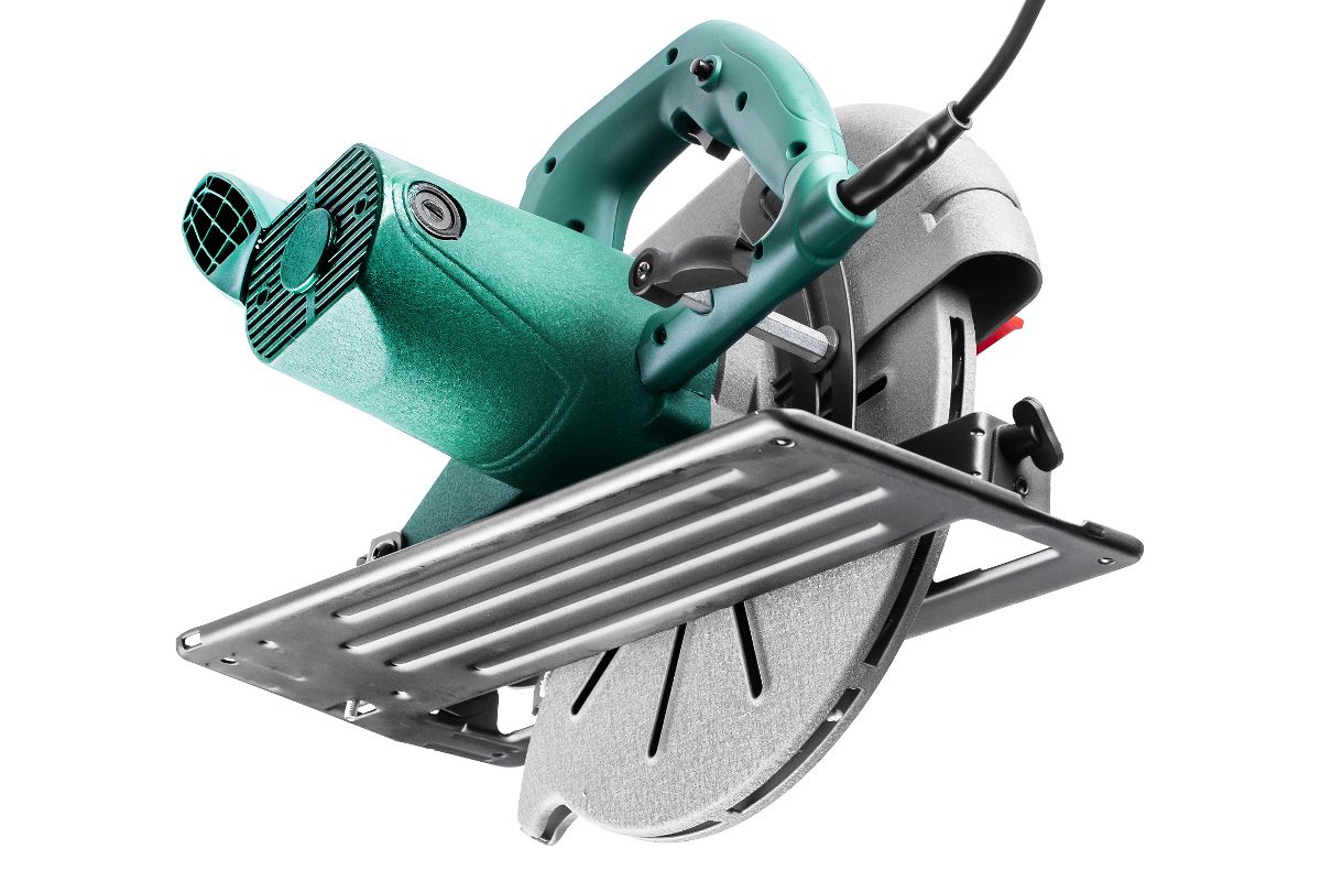 Производительная циркулярная пила с двигателем мощностью 2400 Вт. Стандарт пильного диска 305 мм (не входит в комплект поставки) позволяет достичь глубины пропила 117 мм. Для облегчения процесса замены пильного диска конструкцией предусмотрена блокировка вала. Глубина пропила и угол наклона пильного диска к плоскости материала регулируется с помощью расположенных на основании пилы транспортиров и двух фиксаторов: глубина - рычажковый фиксатор, угол наклона - винтовой. Угол наклона диска регулируется в диапазоне от 90 до 45 градусов к поверхности материала.
