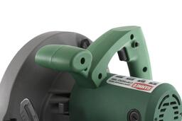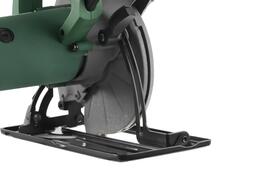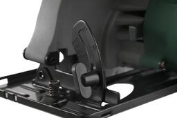 Производительная циркулярная пила с двигателем мощностью 1500 Вт. Модель оснащена пильным диском 185 мм, что позволяет достичь глубины пропила 59 мм. Для облегчения процесса замены пильного диска конструкцией предусмотрена блокировка вала. Глубина пропила и угол наклона пильного диска к плоскости материала регулируется с помощью расположенных на основании пилы транспортиров и двух фиксаторов: глубина - рычажковый фиксатор, угол наклона - винтовой. Угол наклона диска регулируется в диапазоне от 90 до 45 градусов к поверхности материала. Длина сетевого кабеля 2 метра.