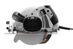 Шероховатая пластиковая рукоять хорошо фиксирует инструмент в руке. Еще одно преимущество циркулярки – небольшие габариты и вес.